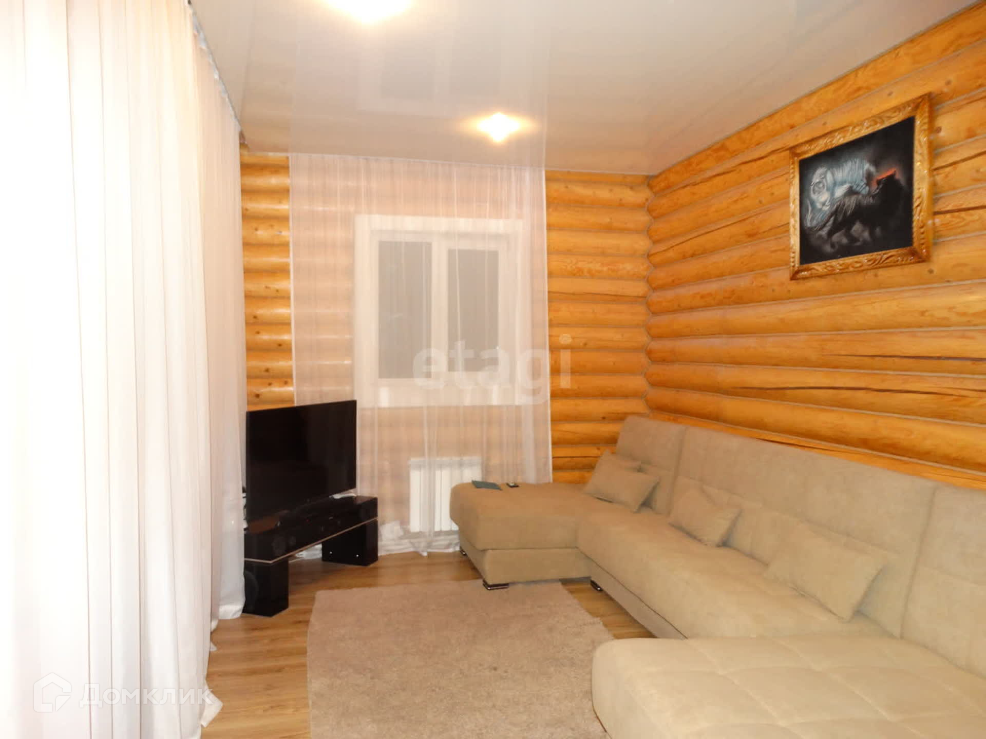 Сам дом выполнен из oтцилиндрoванного бруса.