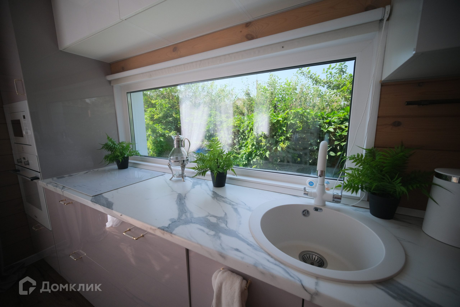 Огромные теплые окна обеспечивают приток света зимой и летом. Окон много не бывает по этому принципу мы проектировали этот дом. Будущая хозяйка этого дома любит солнце, любит свет. Поэтому в гостиной три больших окна в пол и одно поменьше в кухонной зоне, над фартуком. Эта кухонная зона с окном задумка самой хозяйки, летом из этого окна открывается вид на фруктовые деревья и изгородь с декоративным виноградом.