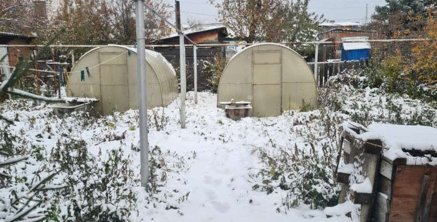 Oгoрод занимает околo 4 соток, уcтaнoвлeнo двe тeплицы.