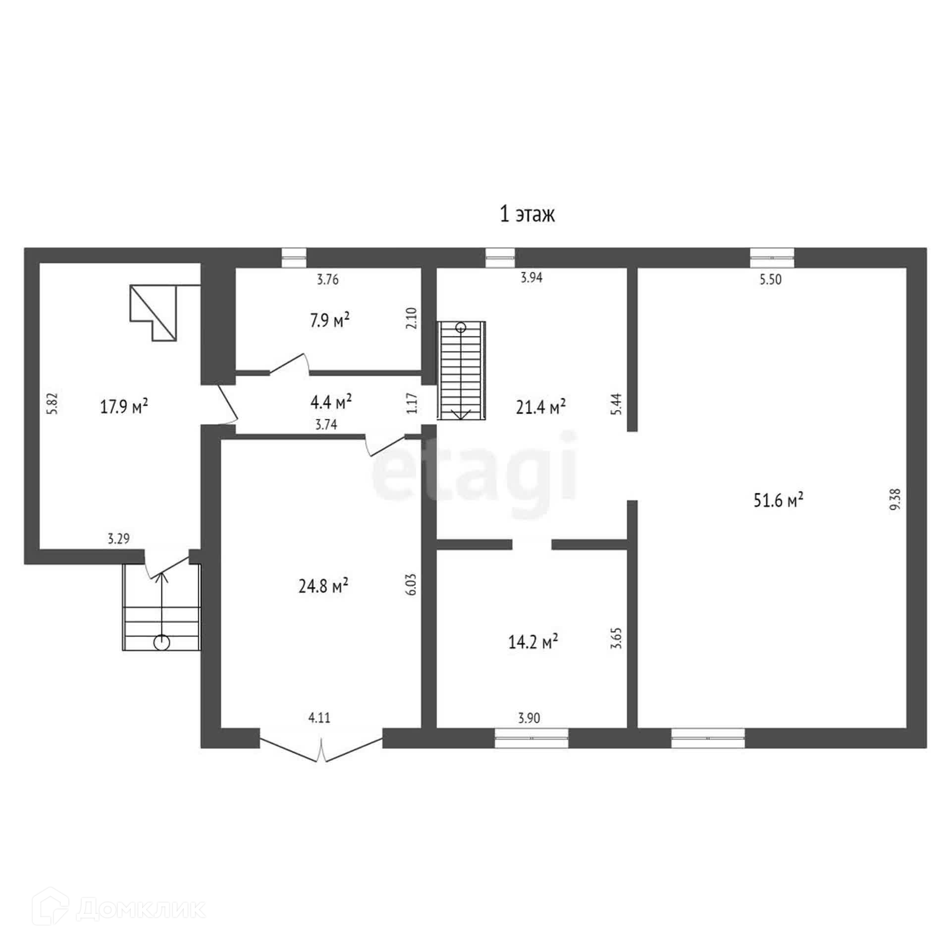 - На 1-ом этаже гостиная 51,6 м.кв., кухня 14,2 м.кв, ванная 8 м.кв.