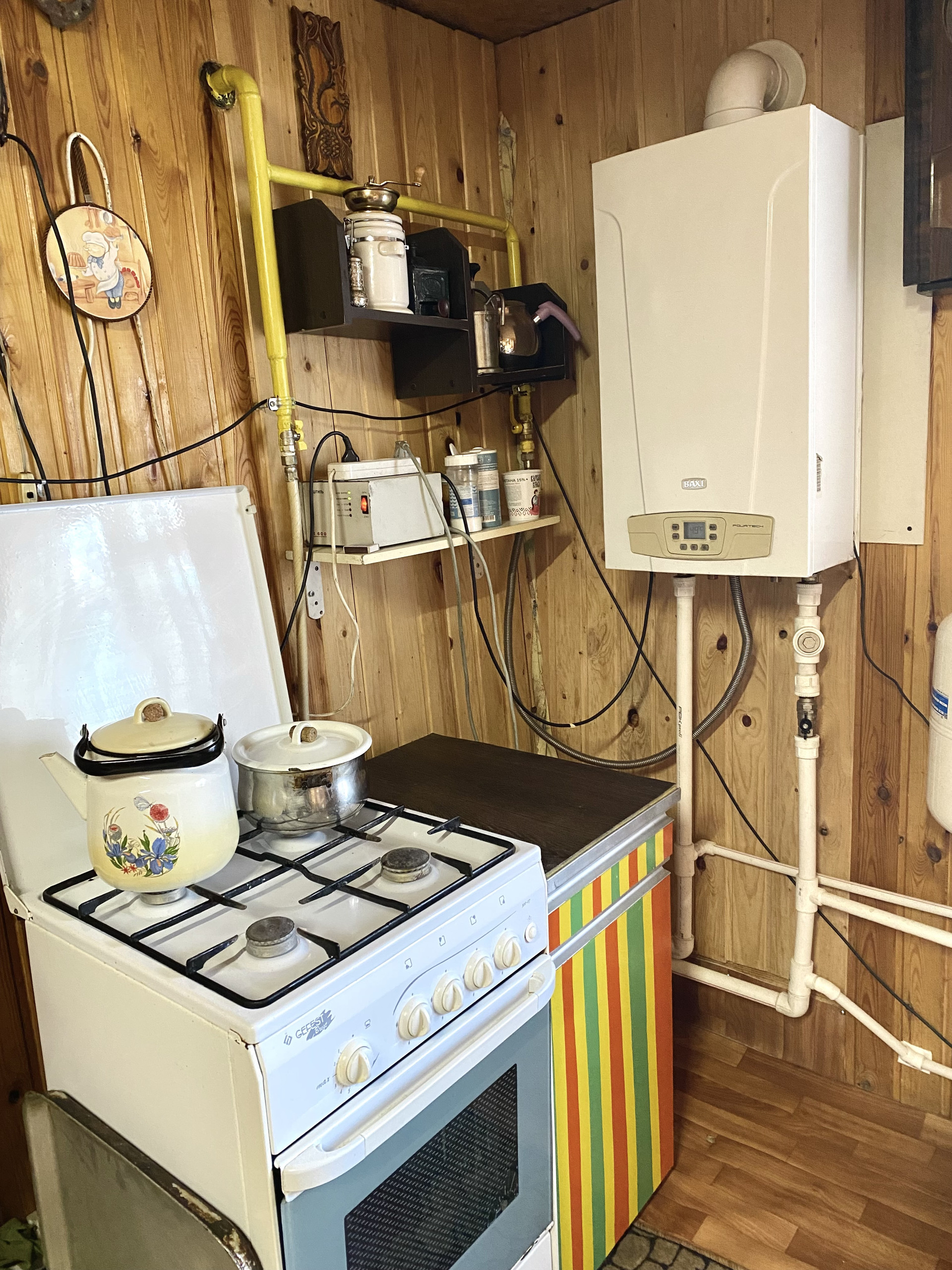 - На 1м этаже камин отапливает помещение, заведен газ.
