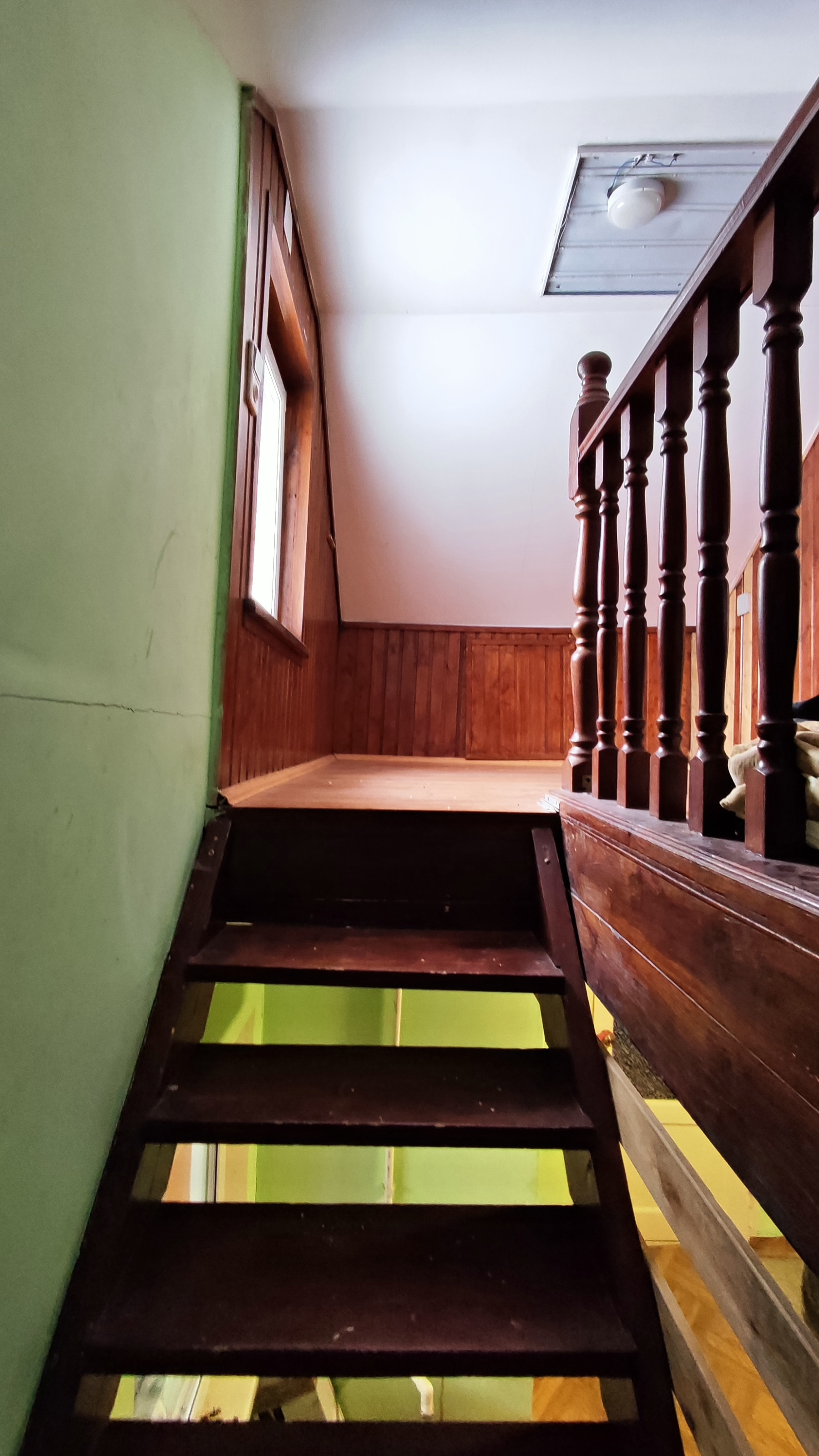 - На второй этаж ведёт крепкая деревянная лестница.