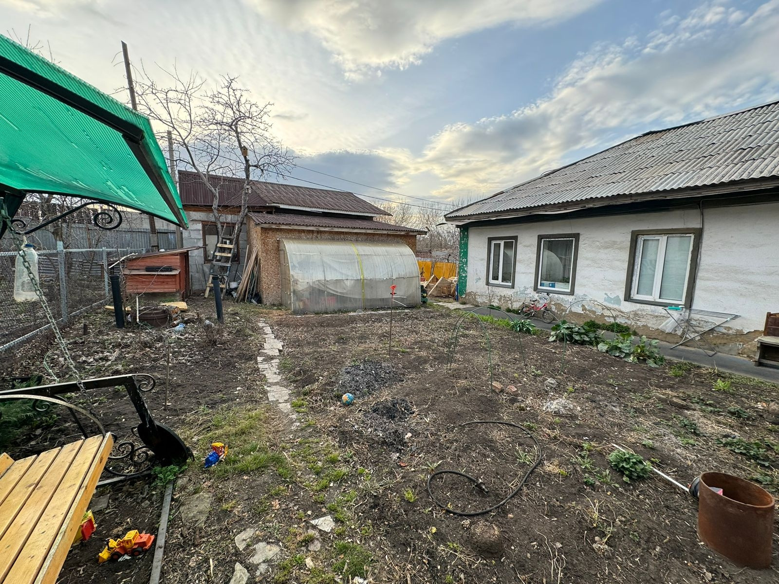 Крытый двор, теплица,  плодовоягодные деревья и кустарники хороших сортов.