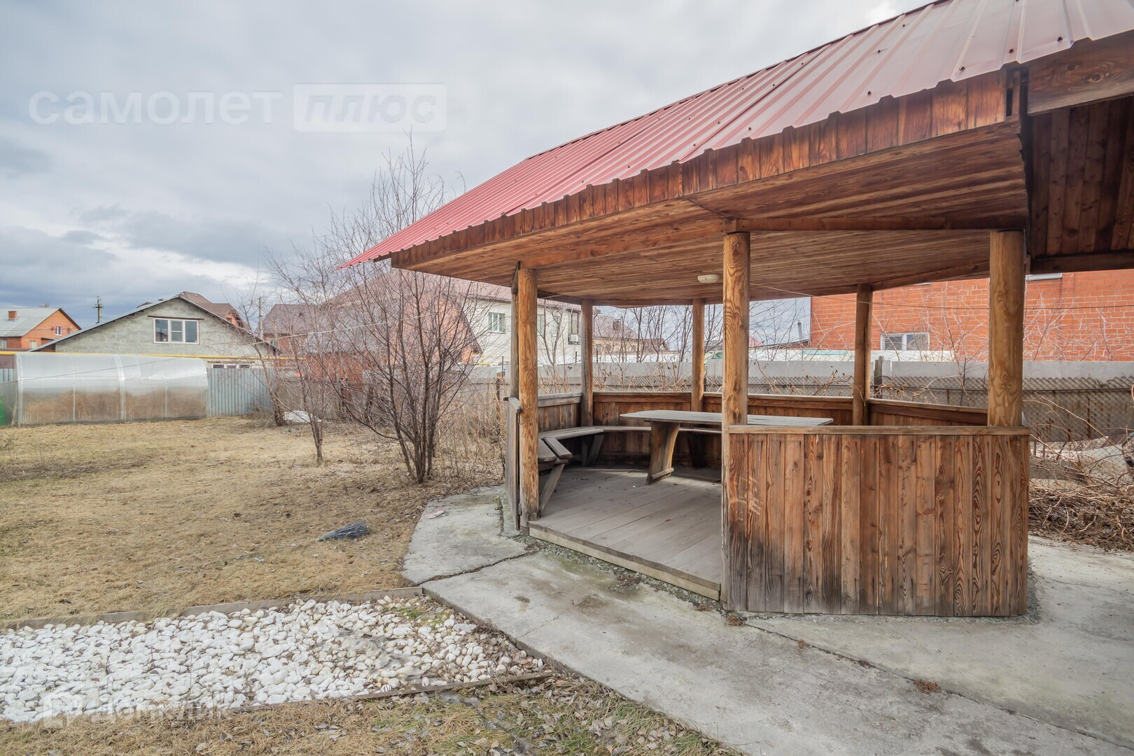 На участке два дома и беседка с мангальной зоной, тёплый гараж на два автомобиля.