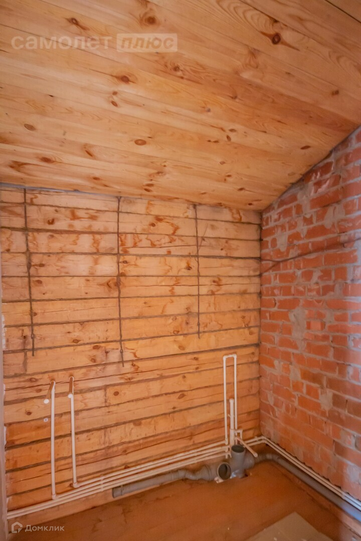 Второй дом не введён в экспликацию. 3 жилых этажа и тёплый подвал, предполагающий кладовую и спортзал, котельная с отдельным входом. В основном доме выполнена предчистовая отделка 1 и 3 этажа. Материал стен брус и кирпич. Так же полностью выполнена разводка электрики, системы отопления.