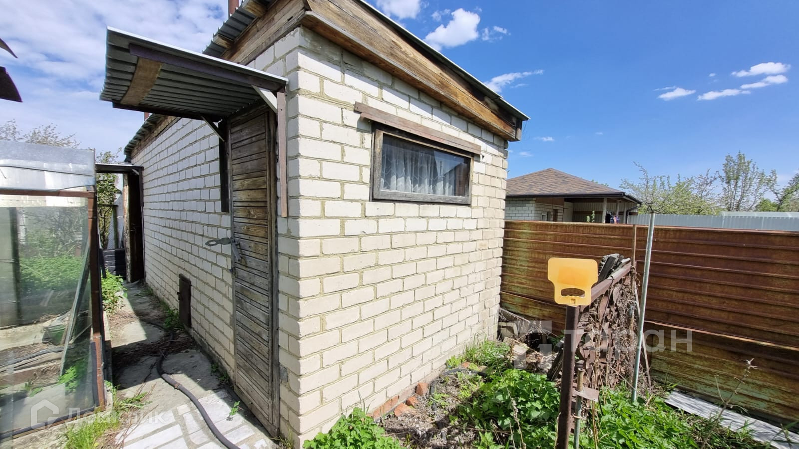 На участке кроме садового дома расположены капитальная баня, теплица, забор и входные ворота на участок из профнастила.