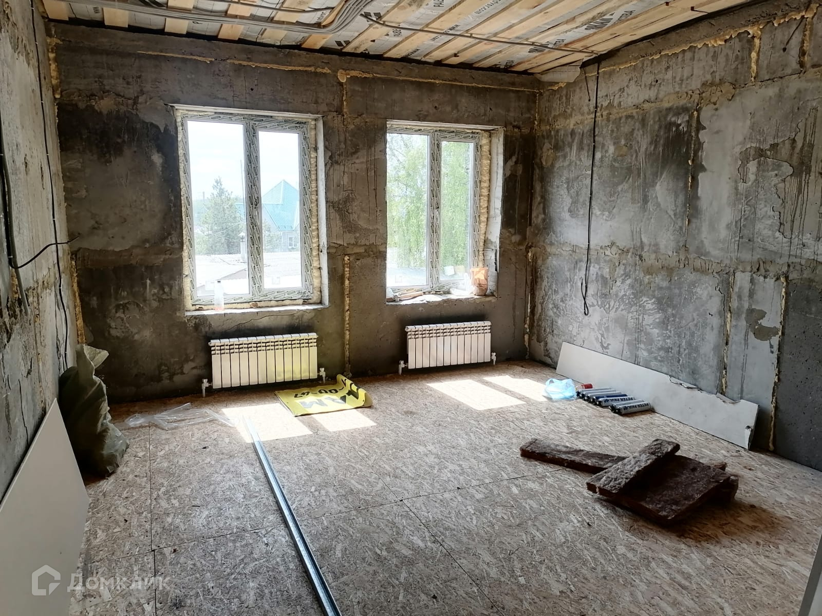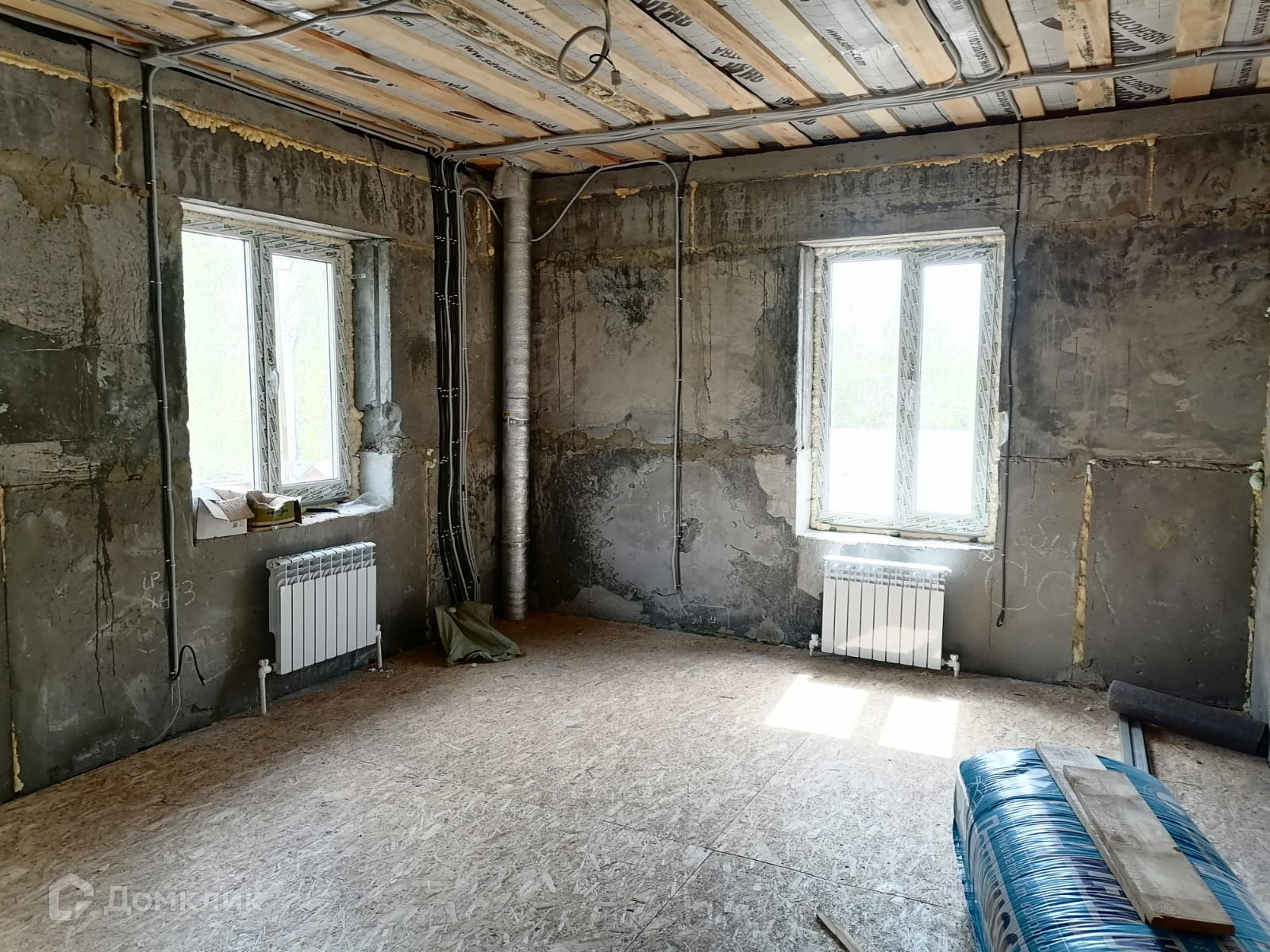 Отделка предчистовая (пол выровнен фанерой, разводка труб, монтаж отопления, разводка электричества).