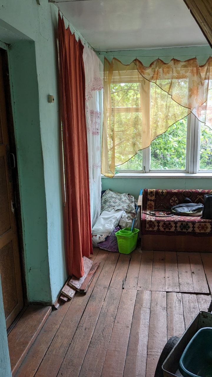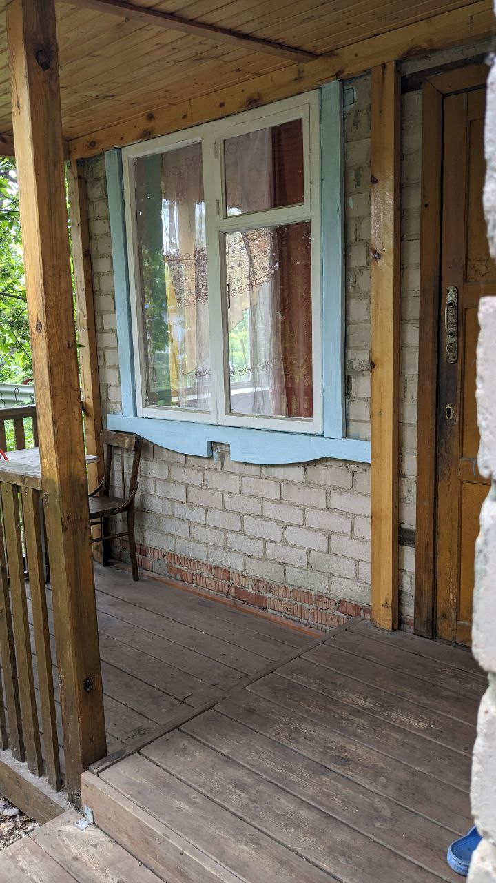 Домик построен по проекту, 2х этажный из силикатного кирпича, 3 комнаты, веранда. На втором этаже лоджия (фронтон зашит деревом) и два подсобных помещения(сейчас используются как кладовые). Печь с духовкой. Крыша покрыта шифером, Добротный деревянный пол в хорошем состоянии, Есть электро счетчики.