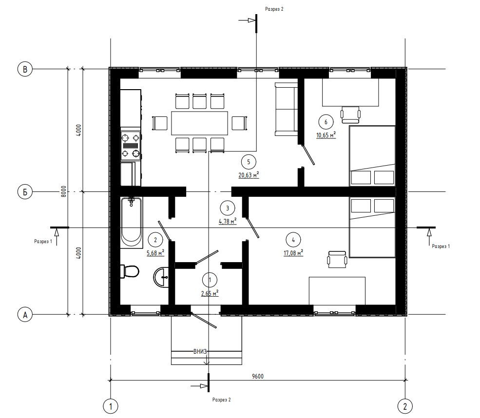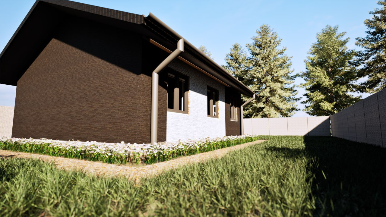 Компания "ПБЦ" предлагает готовый проект дома площадью 61 квм, с 2 спальнями и гостиной