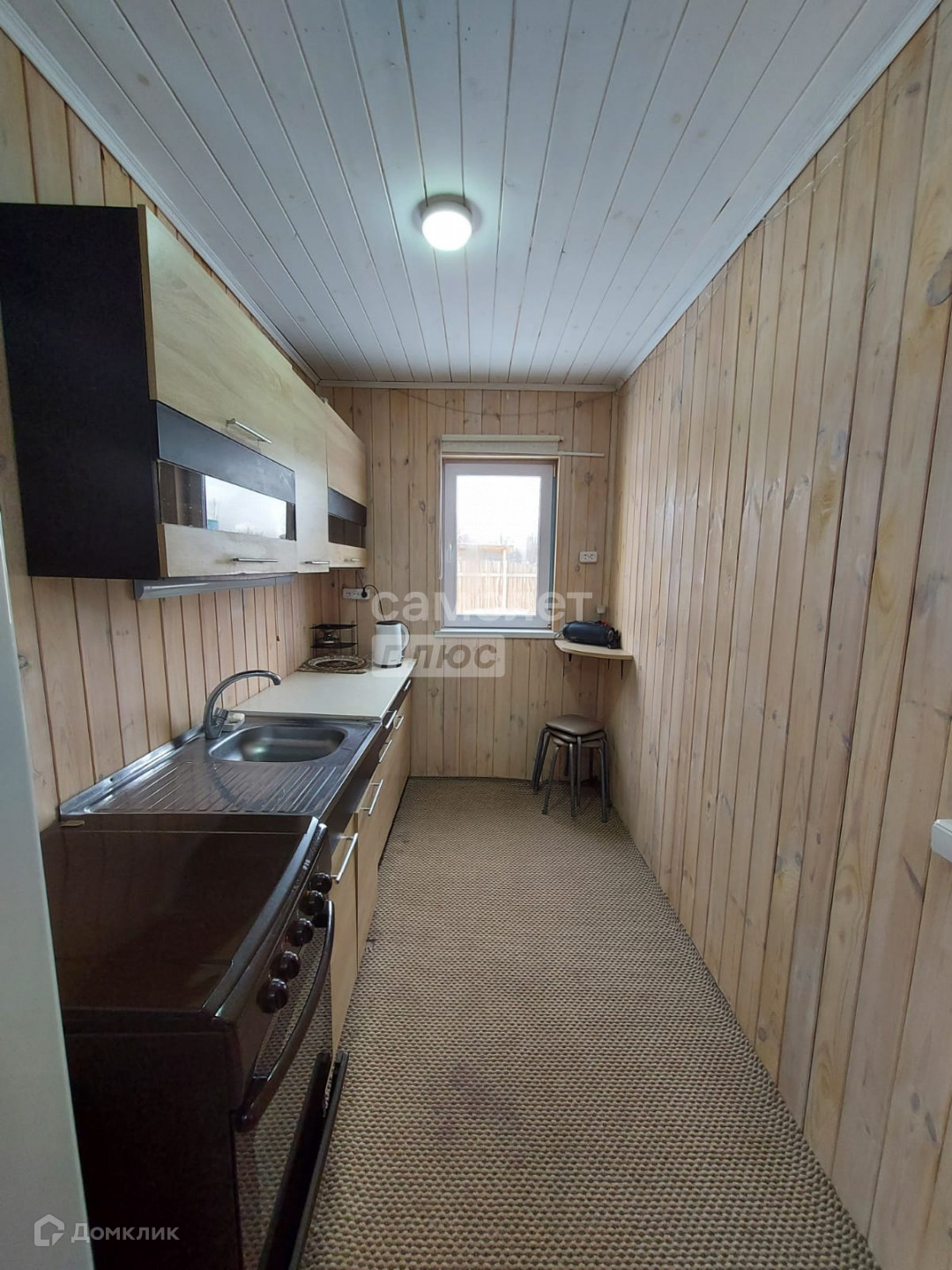 Построен из бруса, состоит из двух комнат, зала и просторной кухни