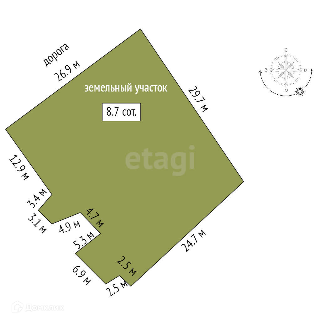 Площадь участка 8.7 сот.