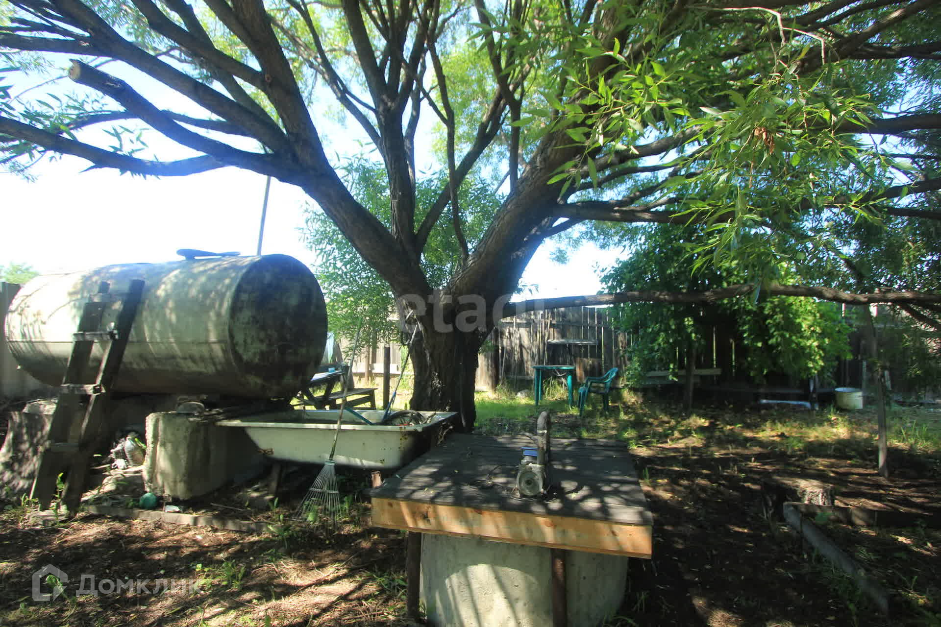 * В конце участка стоит большой бак для воды