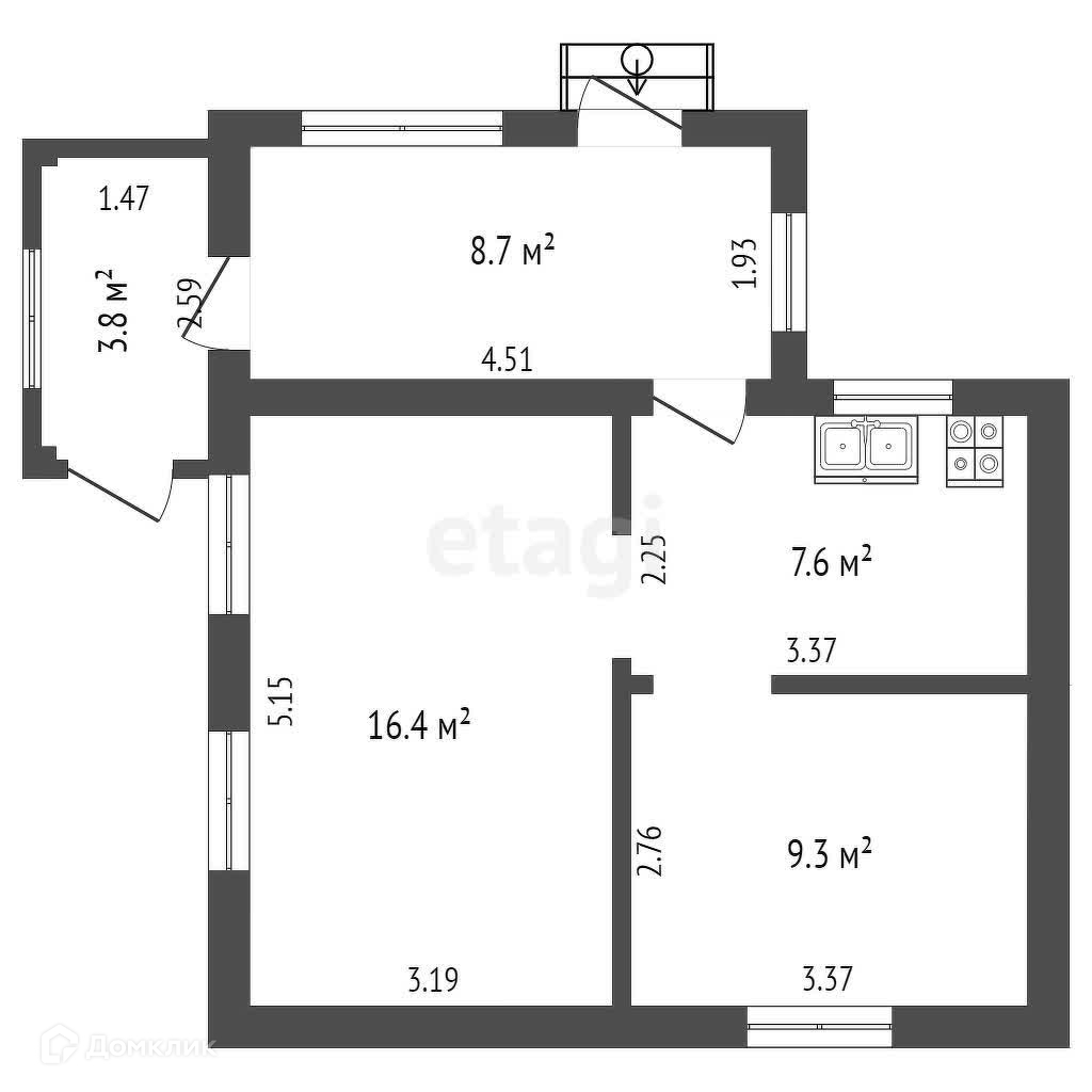 Общая площадь 45.8 м2
