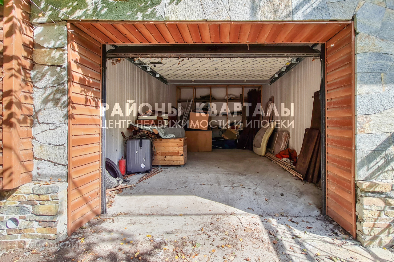 Дом построен из пеноблока, утеплен и отделан натуральным камнем и сайдингом, что придает ему стильный и современный вид. Он состоит из двух этажей, на первом из которых расположены две светлые гостевые комнаты с отдельными санузлами, уютная кухня и два гаража.