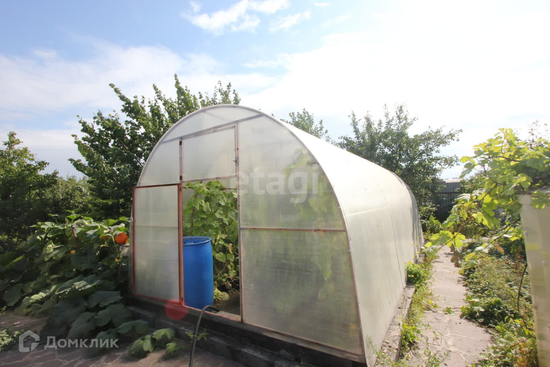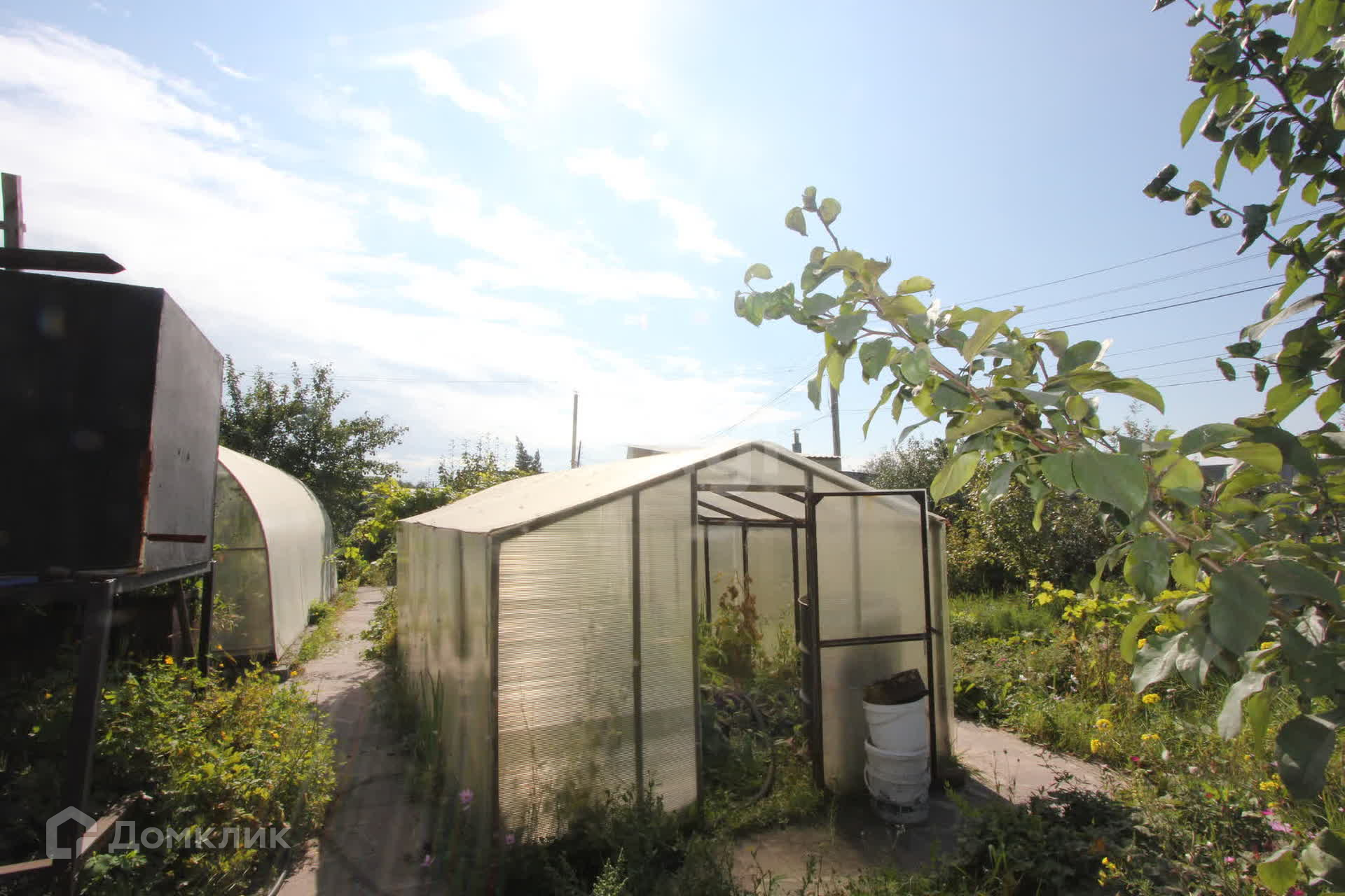 Земельный участок 625 кв.м. разработан, есть различные посадки, несколько плодовых деревьев и кустарников. На участке 3 теплицы из поликарбоната. Самая крупная повреждена в нескольких местах, но листы легко заменить.