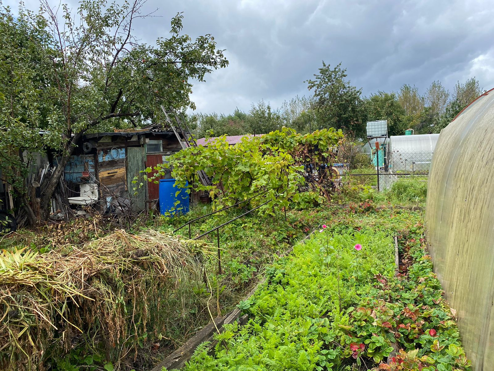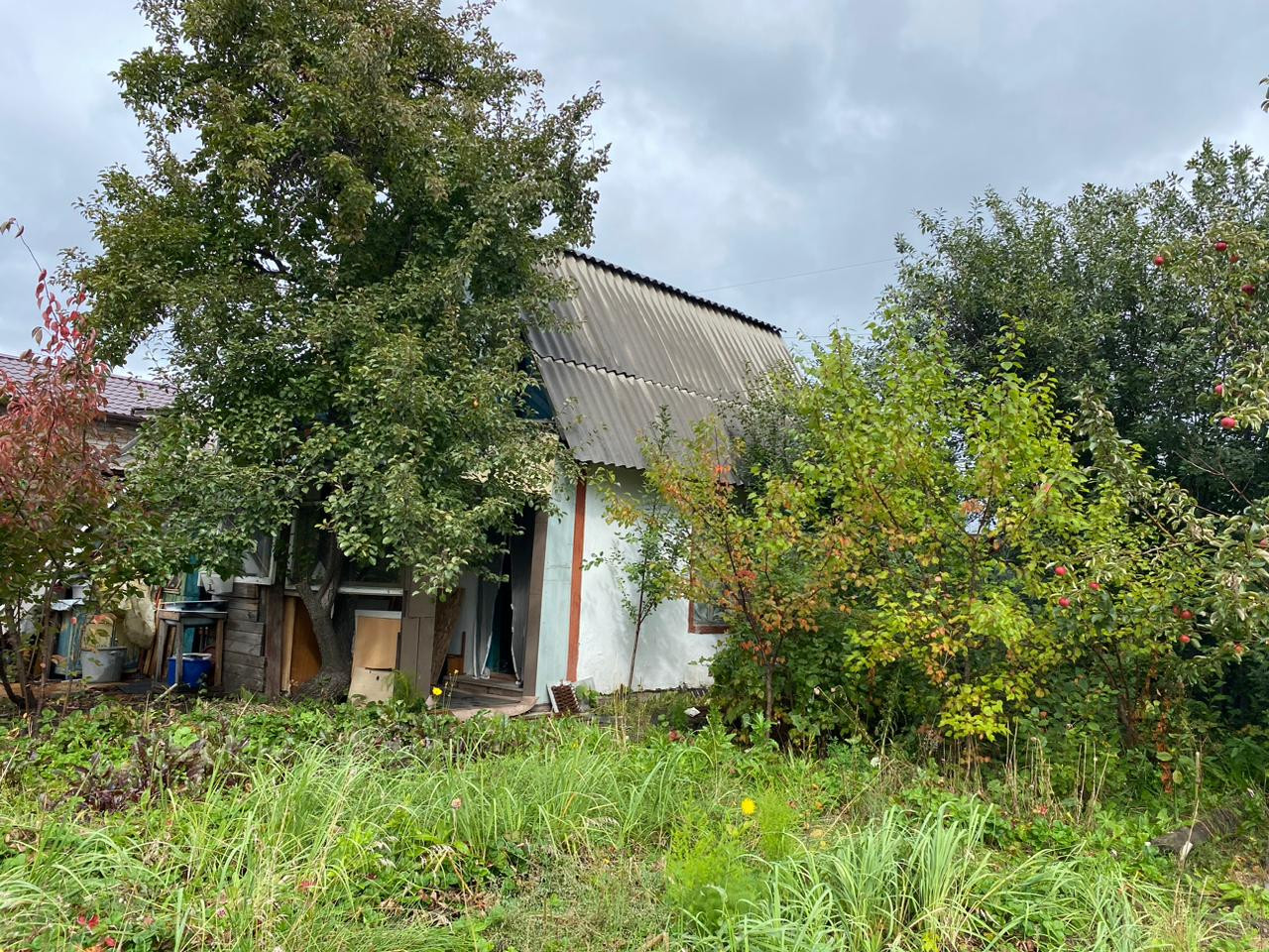 Продам участок 4 сотки земли, дом 40м2 в СТН Тракторосад 3, дорога 14. Дом из шлакоблока, на первом этаже летняя веранда, кухня и спальня, так же с улицы имеется вход на мансардный этаж , там расположена комната. В саду все посадки: яблони,груши, крыжовник, смородина, виноград двух сортов и т.д. Забор из профнастила, ворота для авто и место на участке под один автомобиль. Два места в подарок в  овощехранилище!