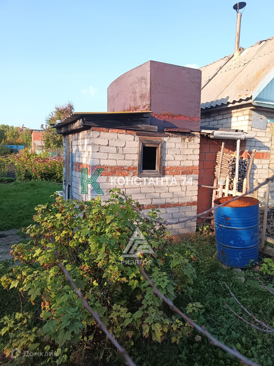 Хозблок с 2м.куб.баком под воду,домик 25кв.м.,водопровод для полива, фруктовые деревья (яблони,груши, абрикосы),кустарники(малина, смородина, вишня ,жимолость), клубника, красивые многолетние цветы.