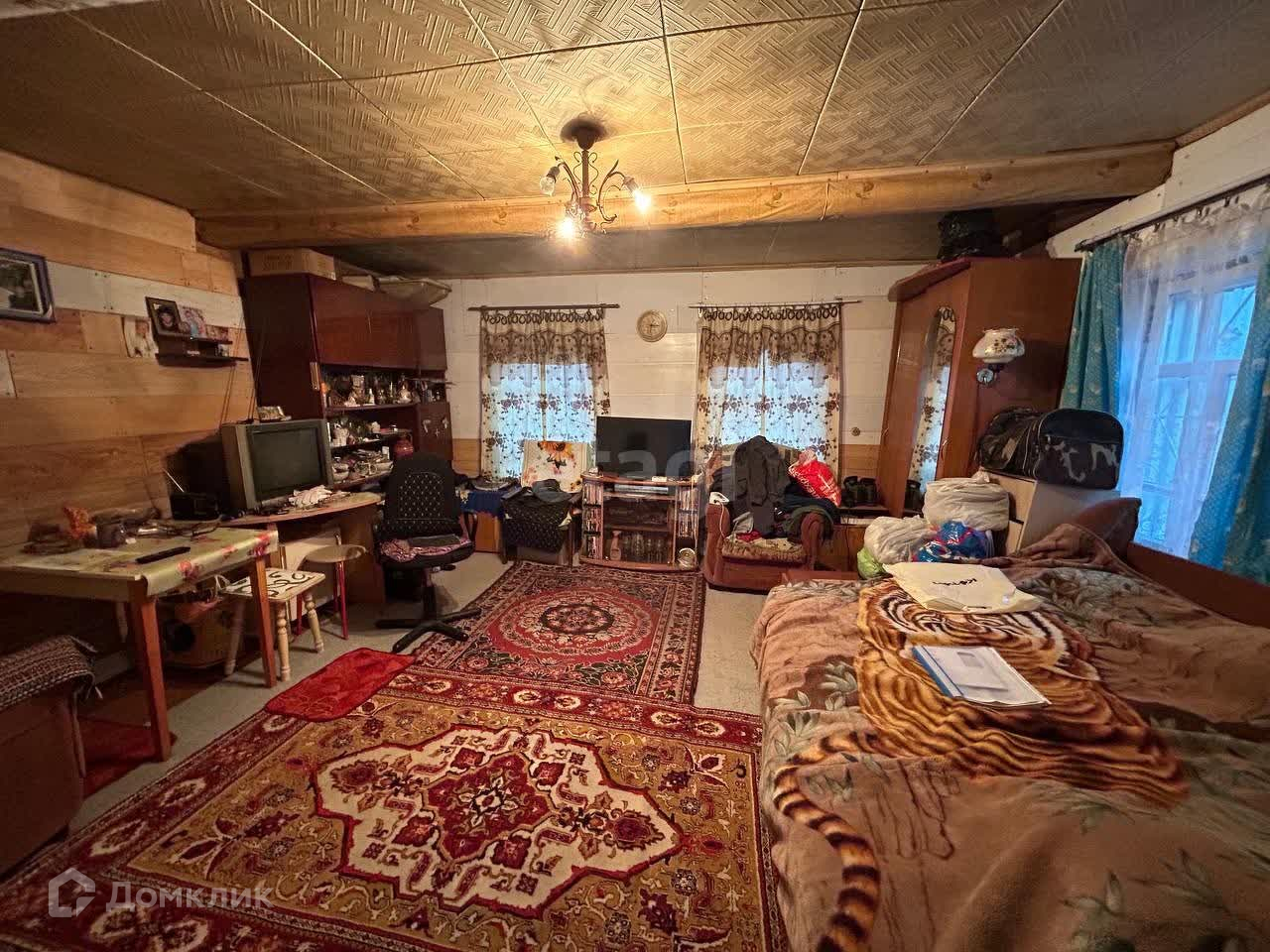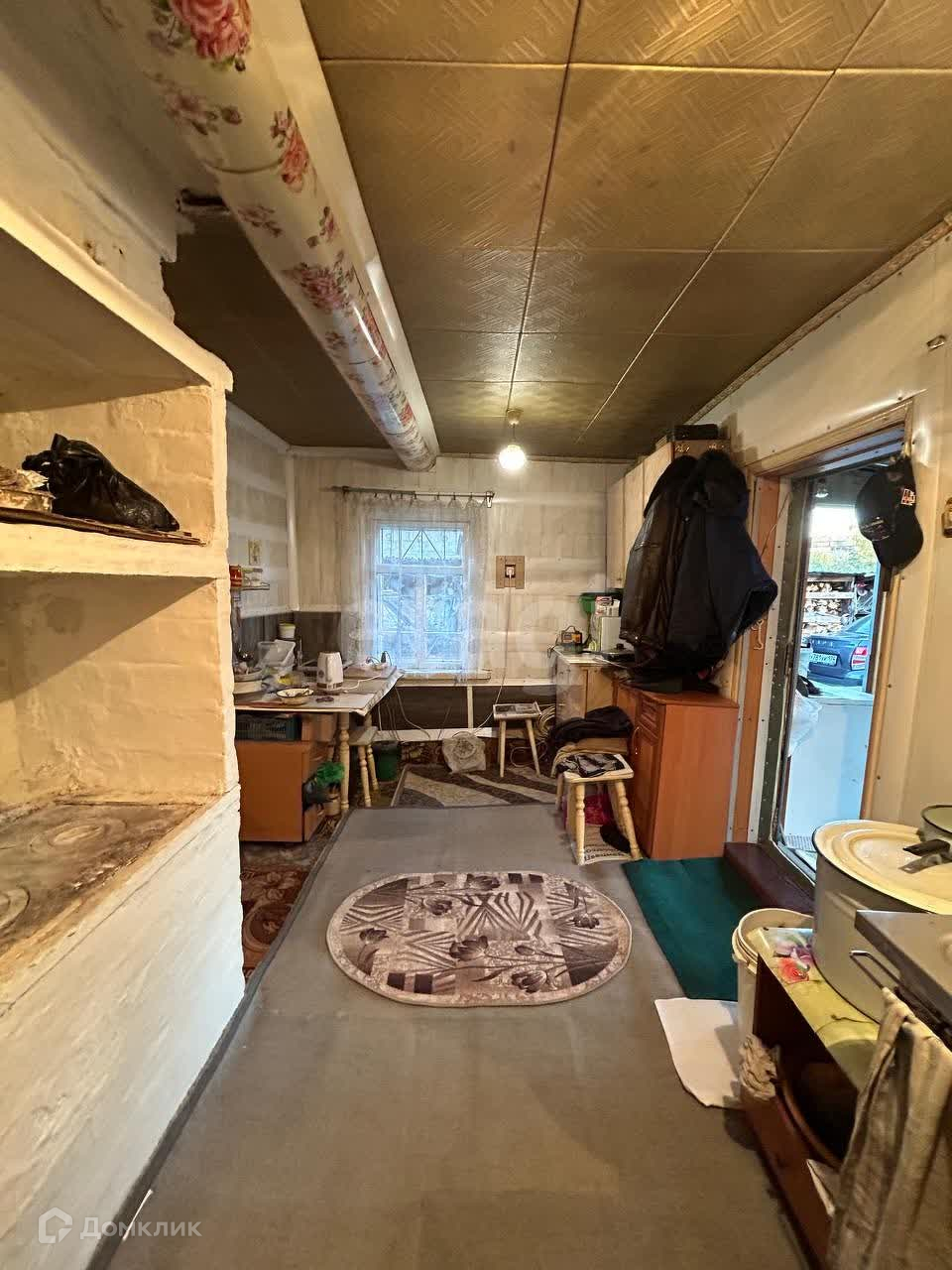 Год постройки дома 1936, материал бревно. Площадь дома 48,4 м2 из них: 1) летняя веранда-тамбур 12,4 м2; 2) кухня 12 м2; 3) жилая комната 19,2 м2. Статус дома жилой, дом пригодный для круглогодичного проживания. Состояние вполне достойное. Отопление печное, вода привозная колонка, уличный туалет