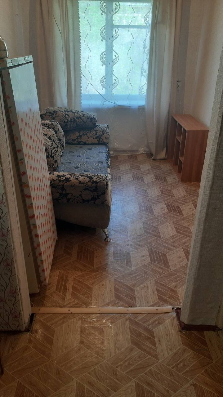 Сделан косметический ремонт, на полу линолеум. Остаётся мебель: диван, тумбочка.