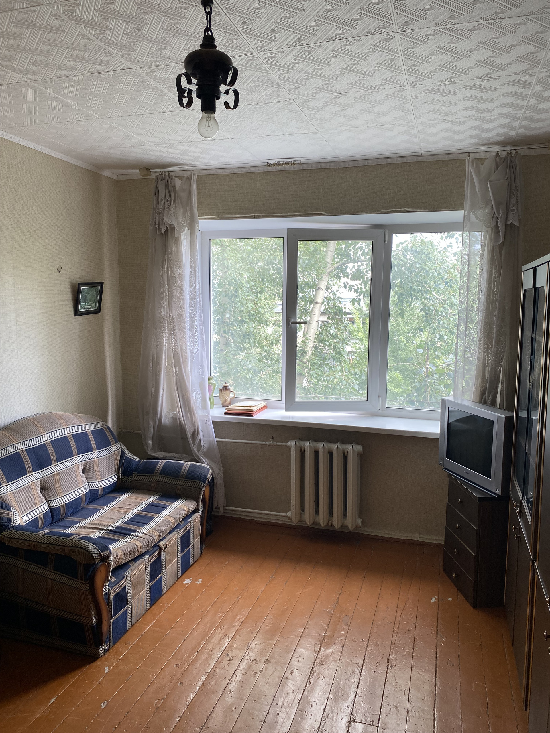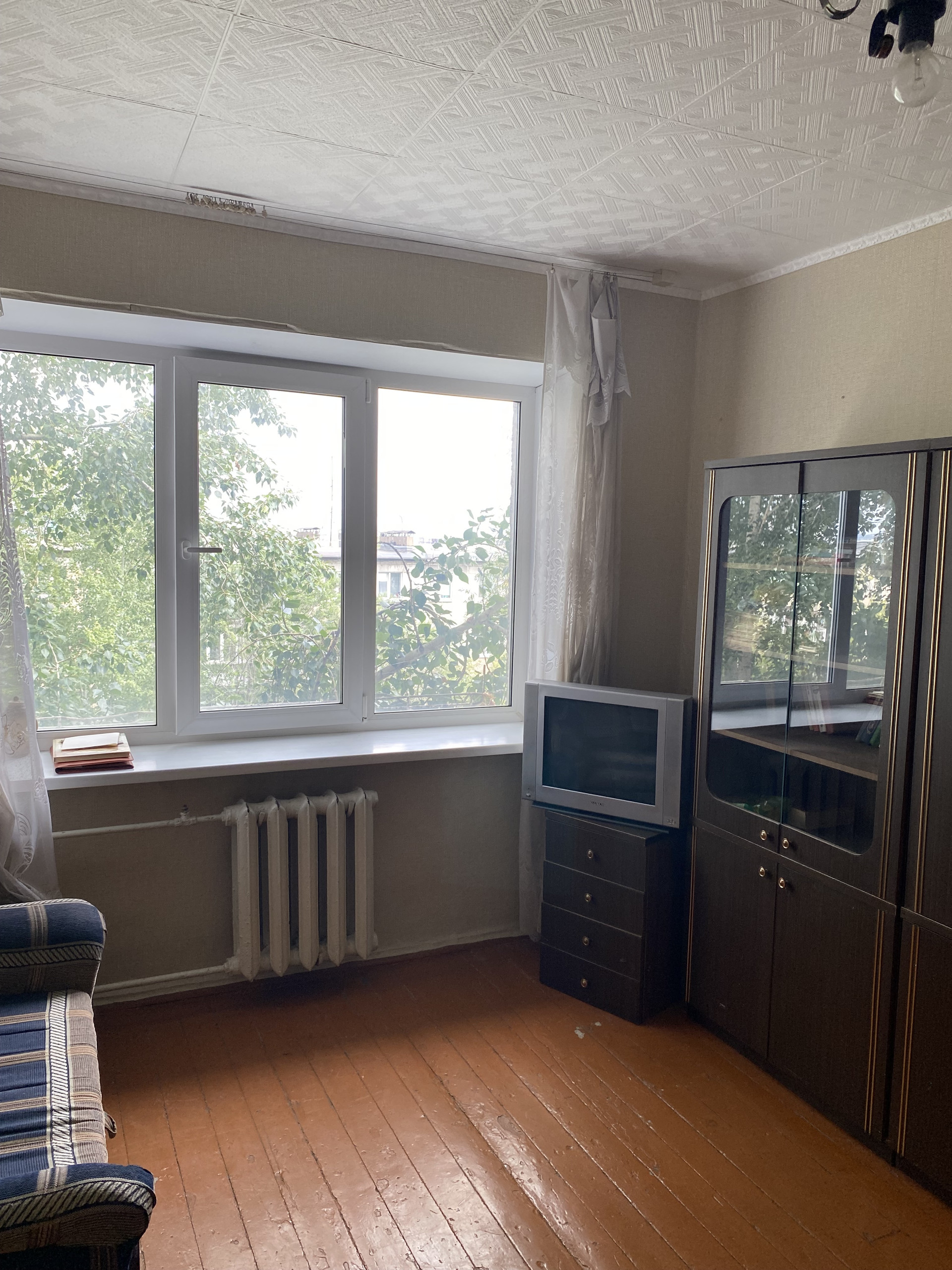 Комната очень светлая и теплая. Установлено трехстворчатое е/окно. Новая входная дверь.