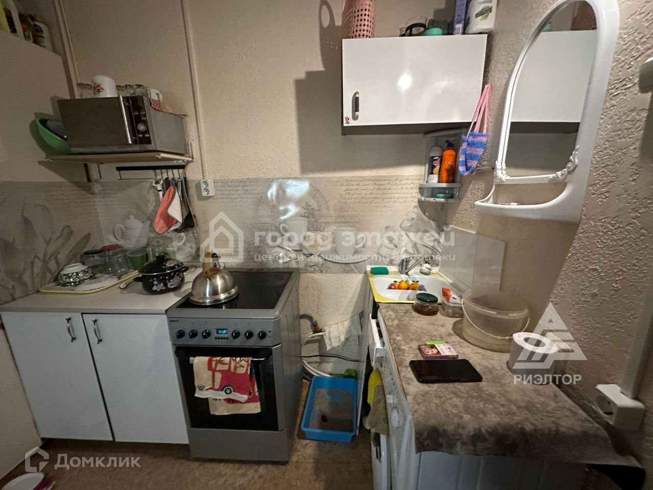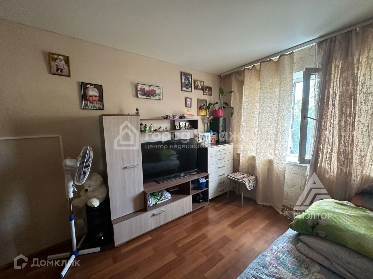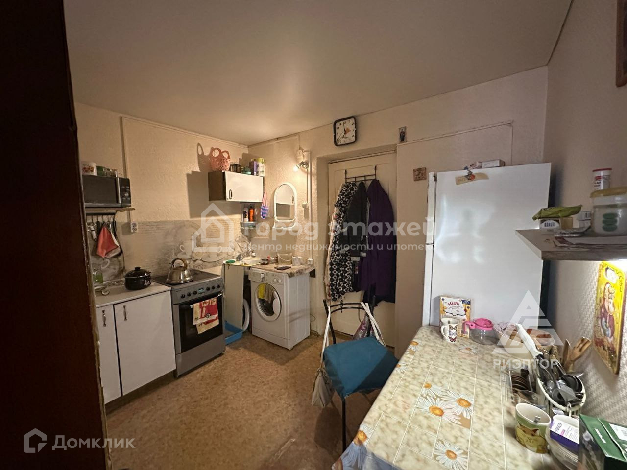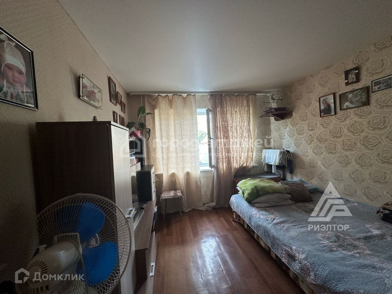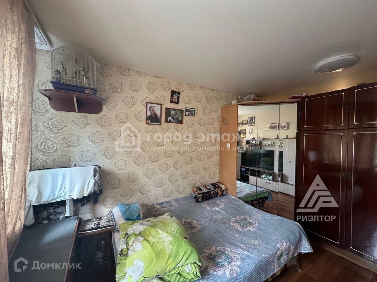 Комната продается в жилом состоянии: натяжной потолок, евроокно, стены выровнены, оклеены обоями, проведена вода, дверь металлическая, на полу линолеум, вместительный угловой шкаф для хранения.