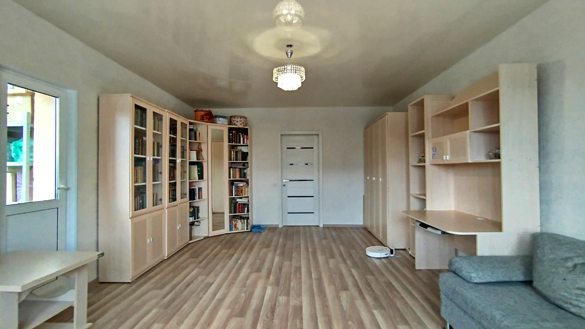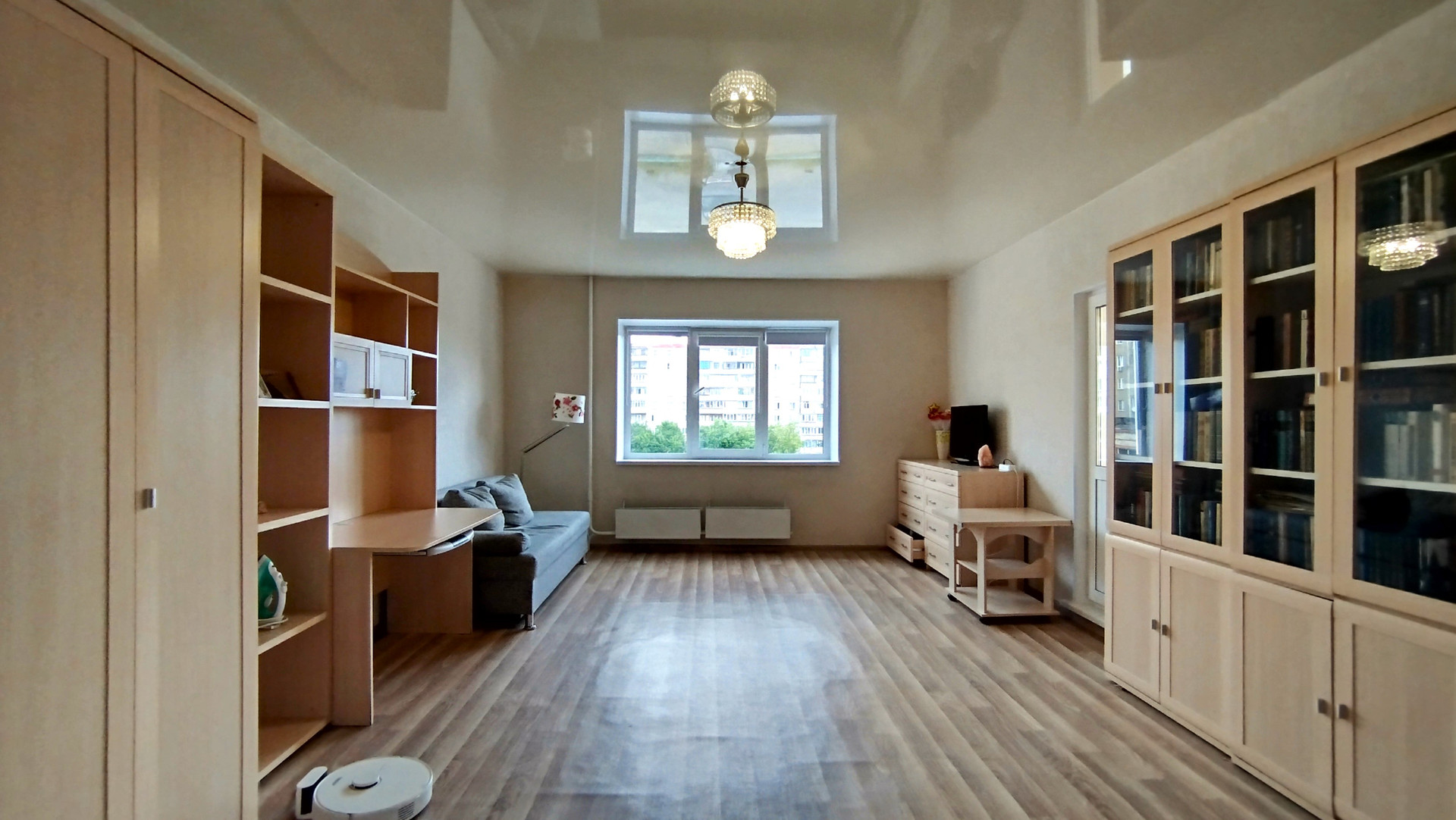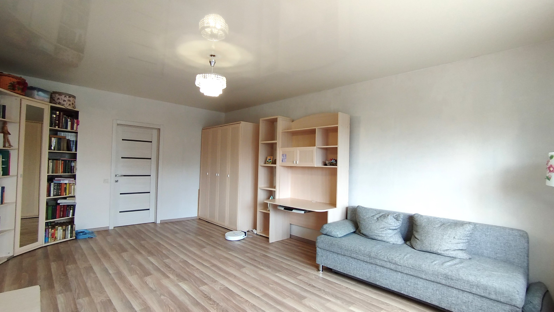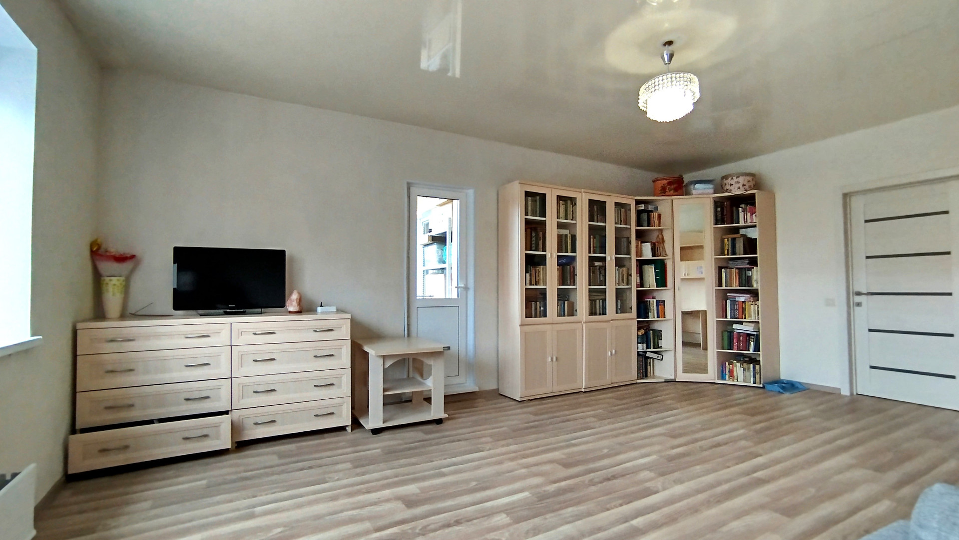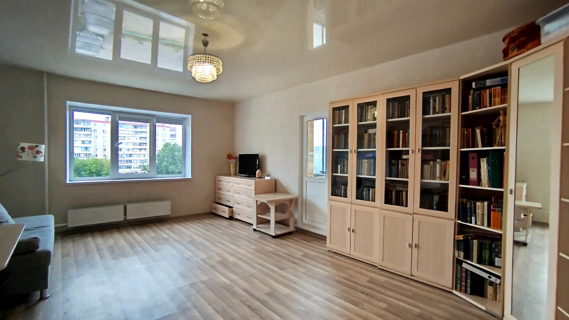 Комната после ремонта, остаётся вся новая мебель, поменяны окна. Есть свой выход на общий балкон, который соединяется с кухней.