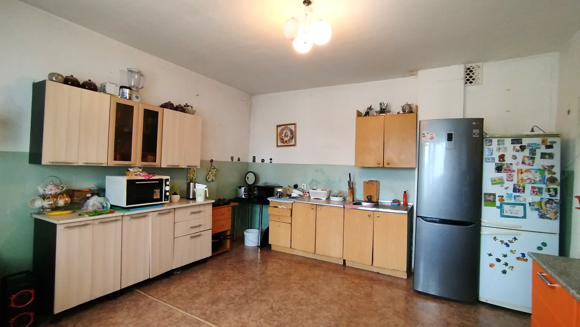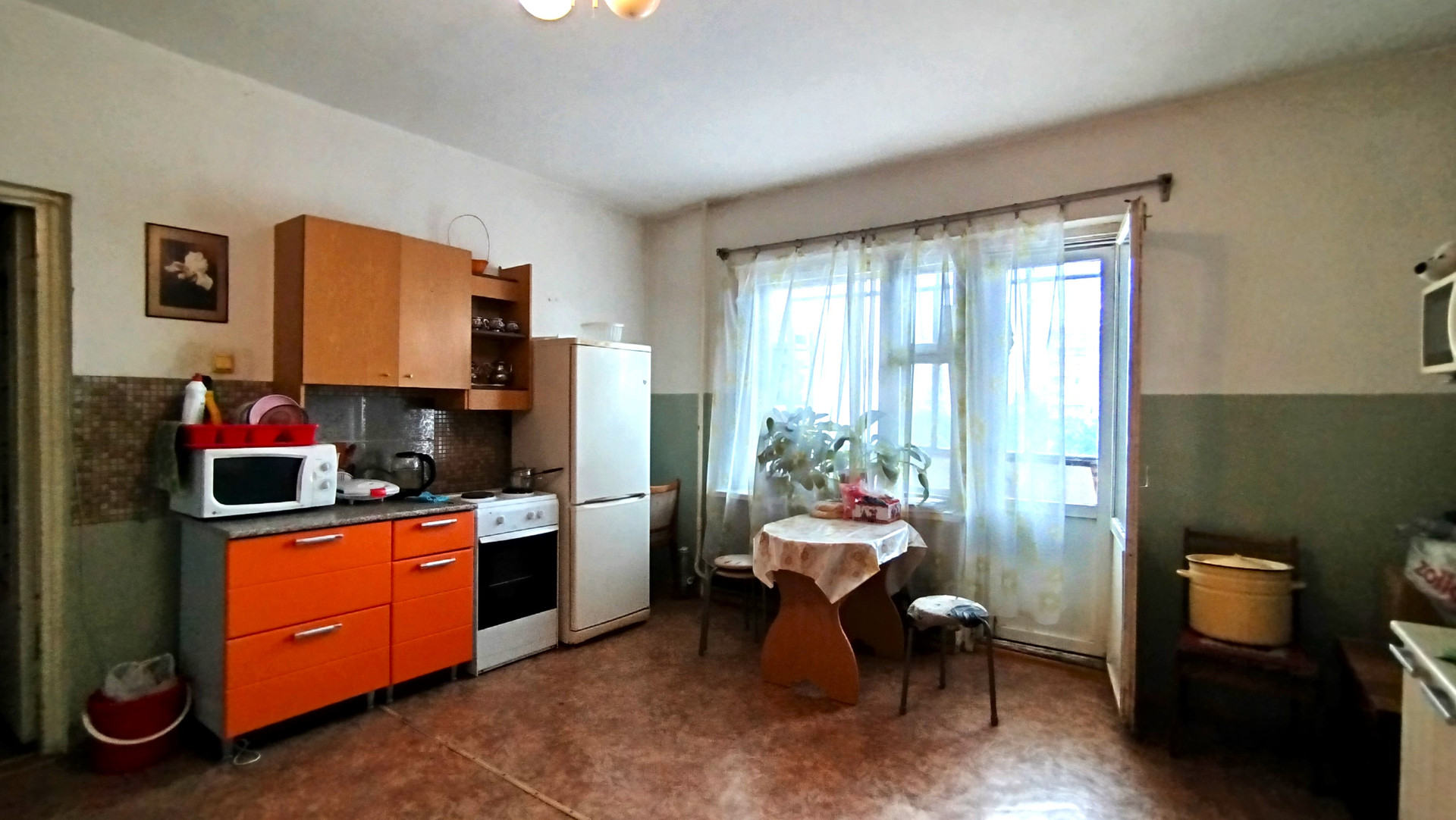Квартира большая, уютная. Соседи хорошие, семейные. Большая кухня, места всем хватает. Есть общий балкон.