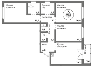 Общая площадь: 89.6 м2