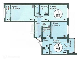 Общая площадь: 33.8 м2
