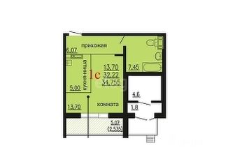Общая площадь: 34.7 м2