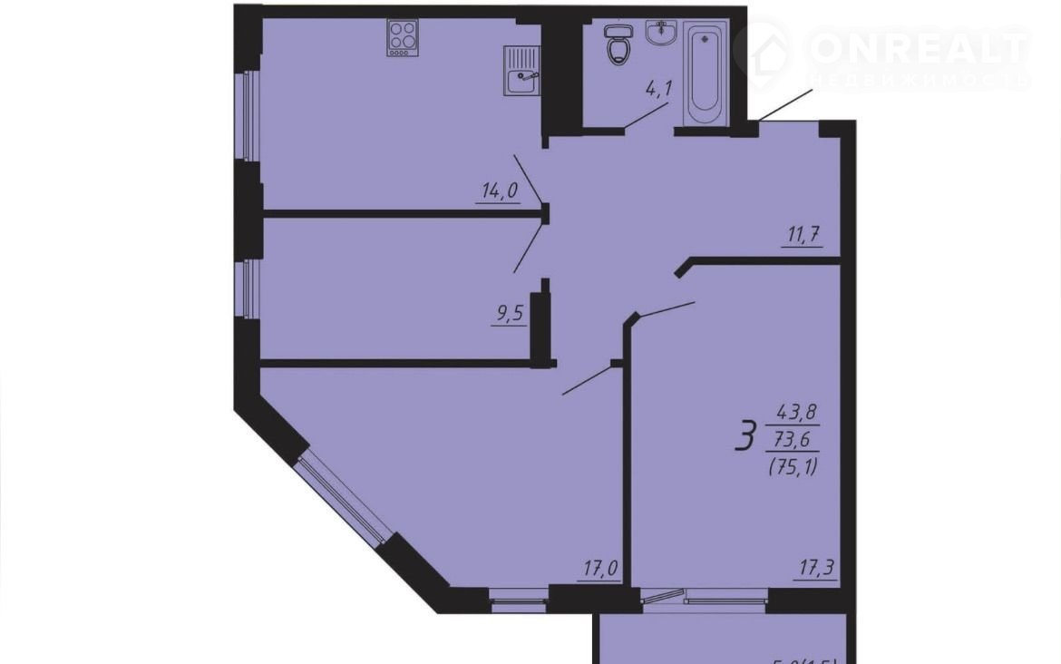 Общая площадь 75.1 м2