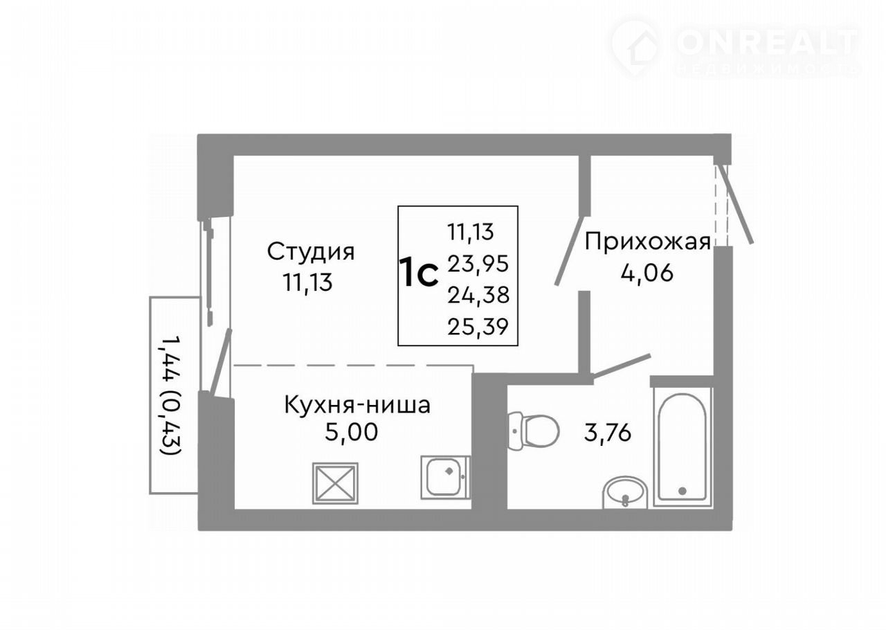 Общая площадь 24.4 м2