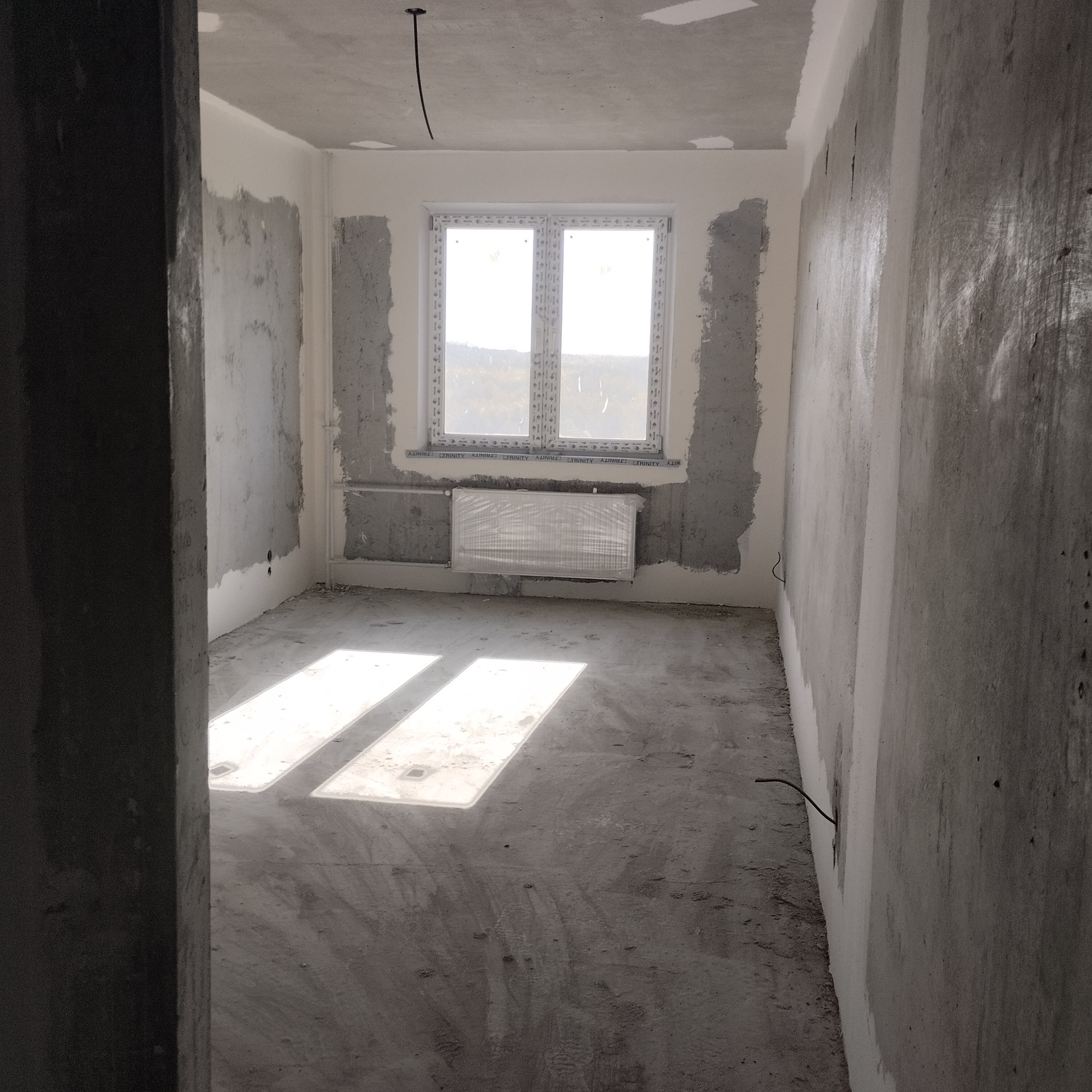 Предчистовая отделка включает в себя: финальную заливку пола; эл. разводку до мест выхода источников, стоят счетчики на воду, радиаторы отопления в комнатах и полотенцесушители в ванной комнате. Пример предчистовой отделки панельного дома - на фото.