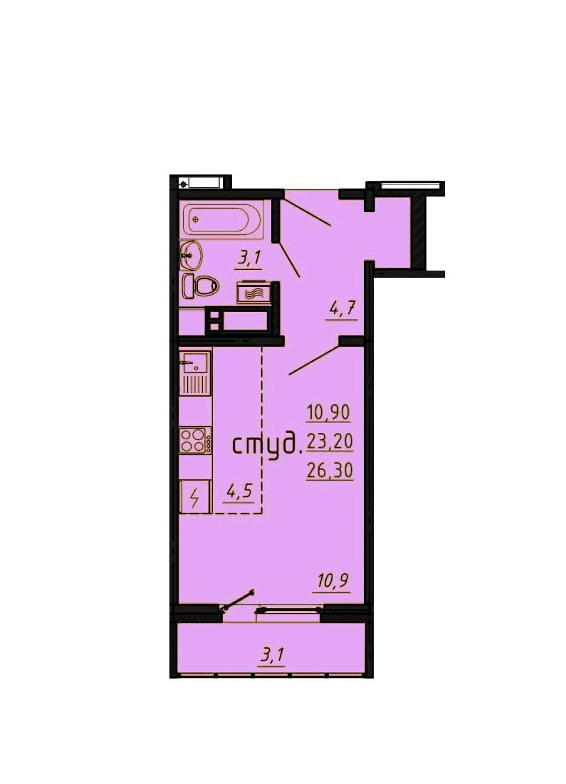 Студия 26 кв. м.