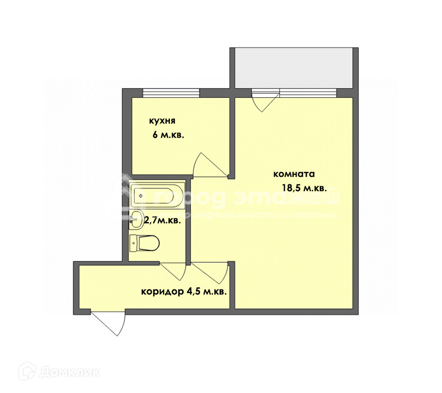Общая площадь 27.6 м2