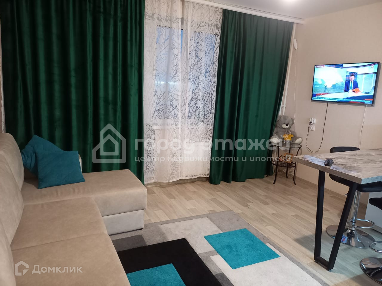 Площадь квартиры - 55 кв.м.. Студия - 19 кв.м., комната - 29 кв.м., санузел совмещен, расположена на 9 этаже 16-этажного дома. Ремонт свежий, сделан из качественных материалов. Мебель и техника новая (меньше года в эксплуатации), остается все!!!!!!!!