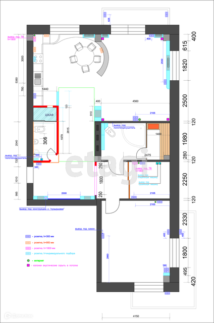 Площадь кухни 60 м2