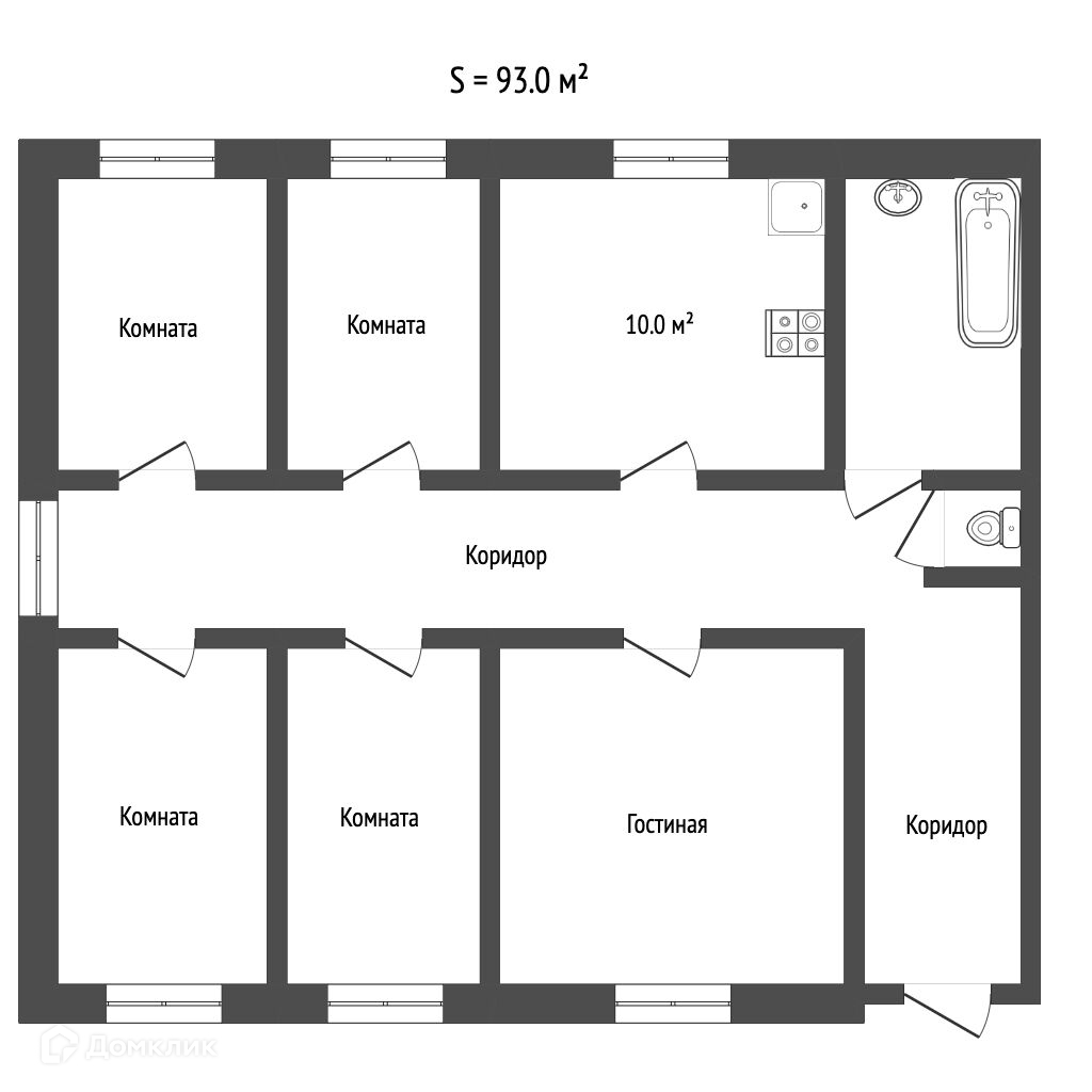 Чистые комнаты, раздельный санузел, просторная кухня. Балкон отсутствует. Общая площадь 93 квадратных метра.