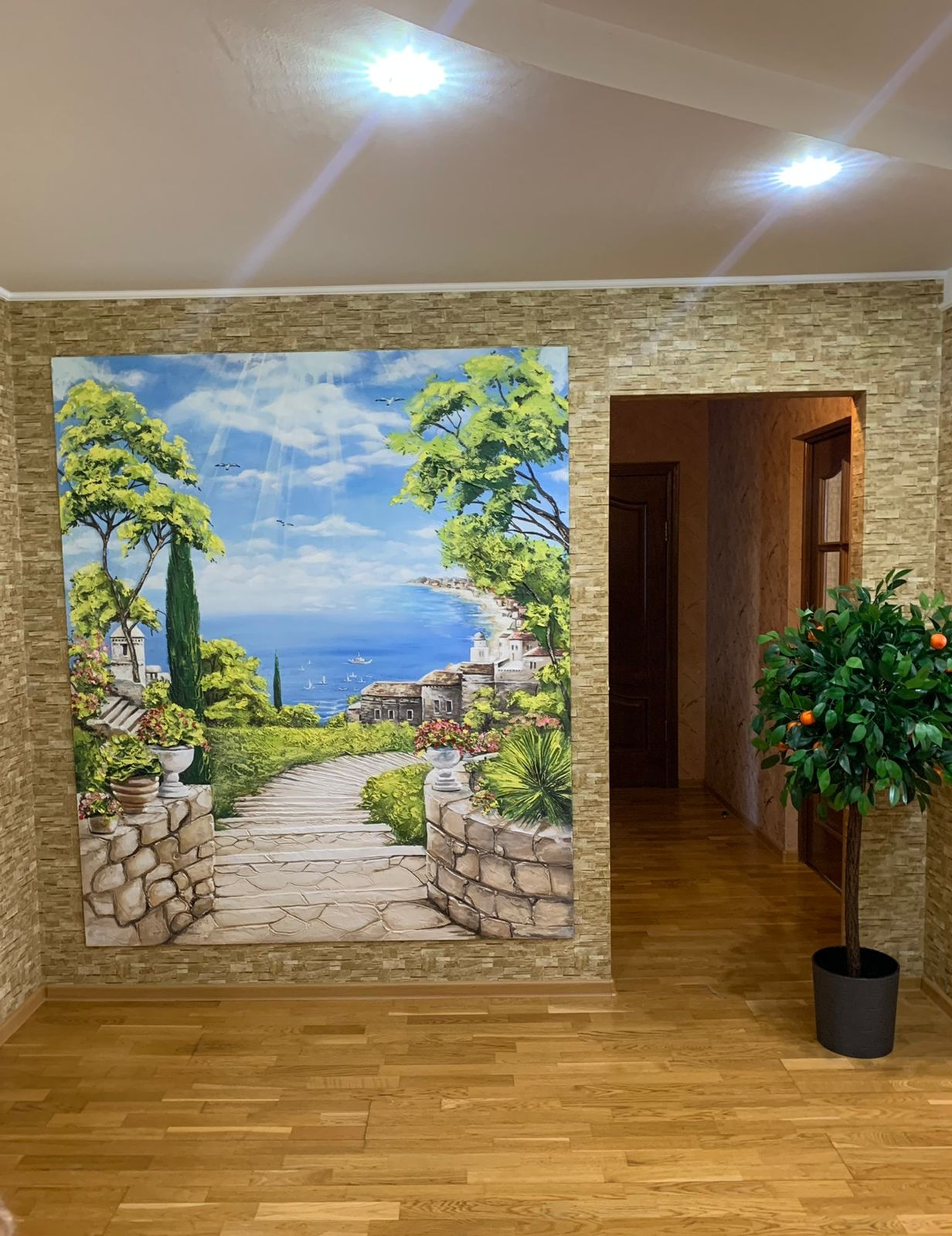 Итальянские обои на стенах.