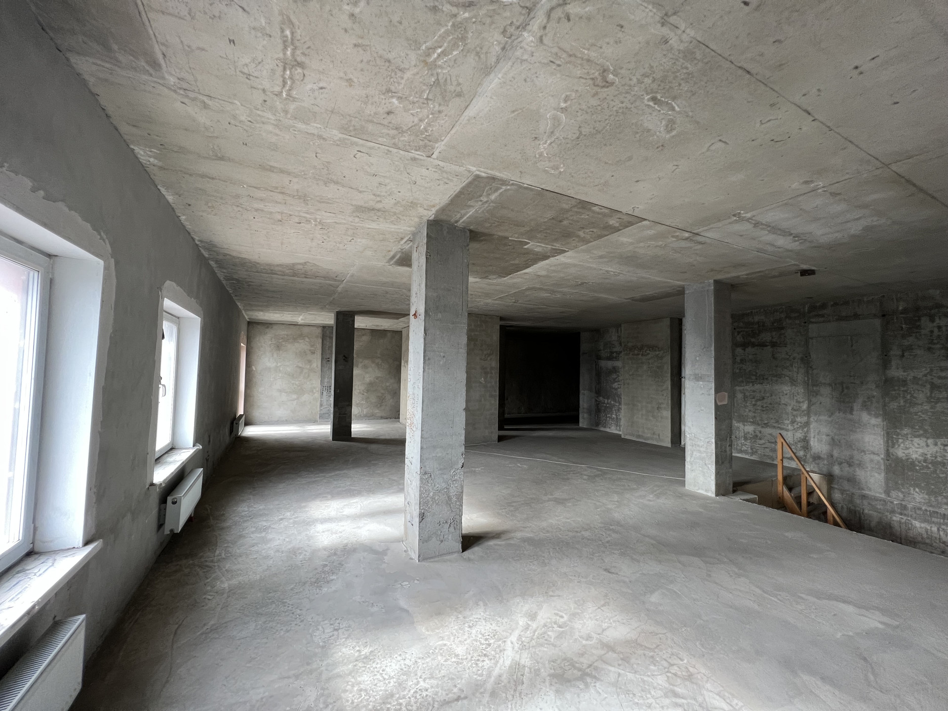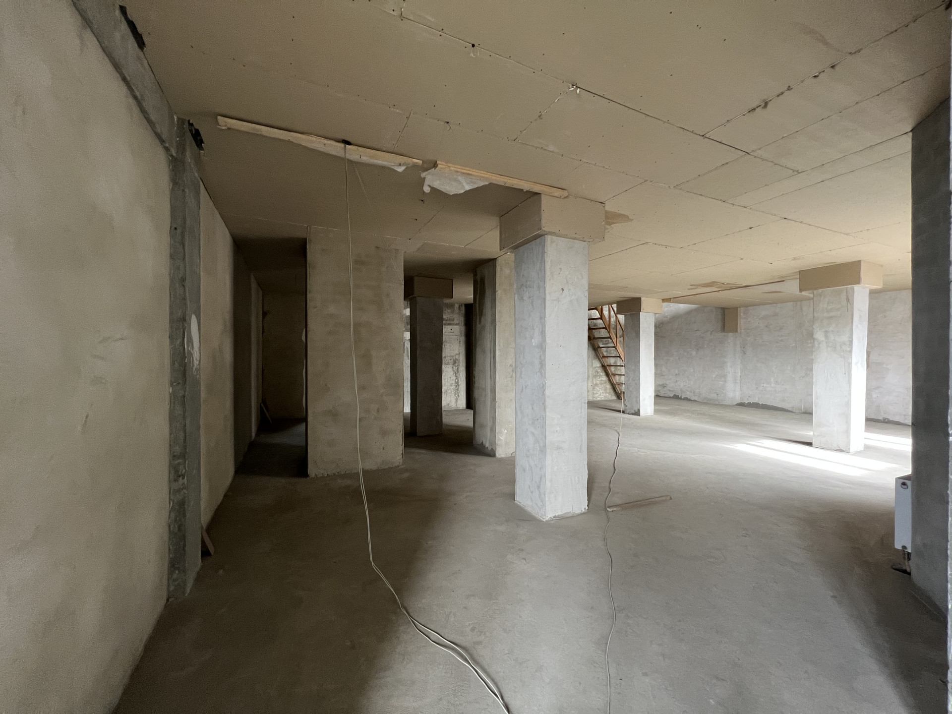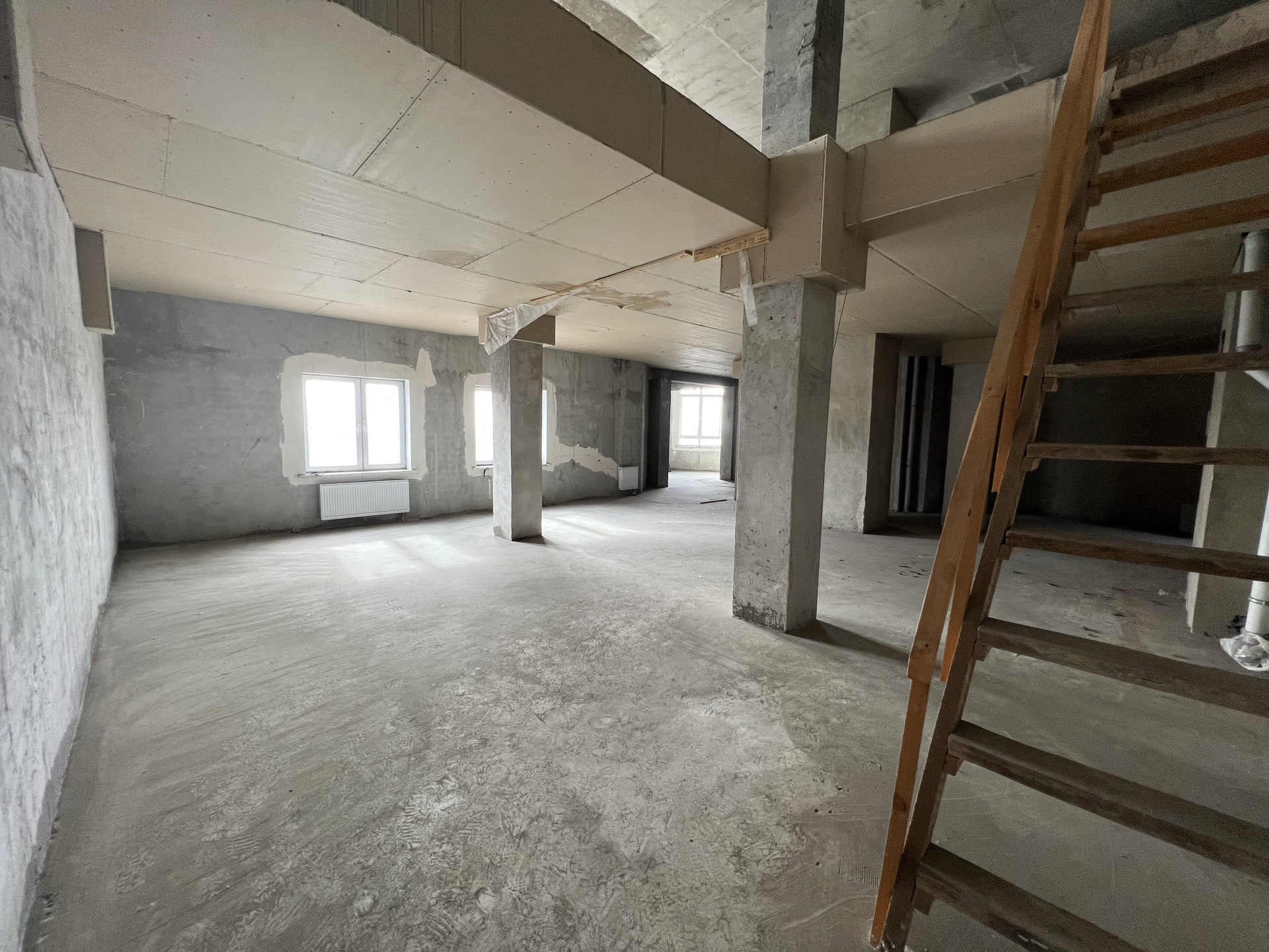 Перекрытия между уровнями укреплены швеллерами и обшиты гипсокартоном.