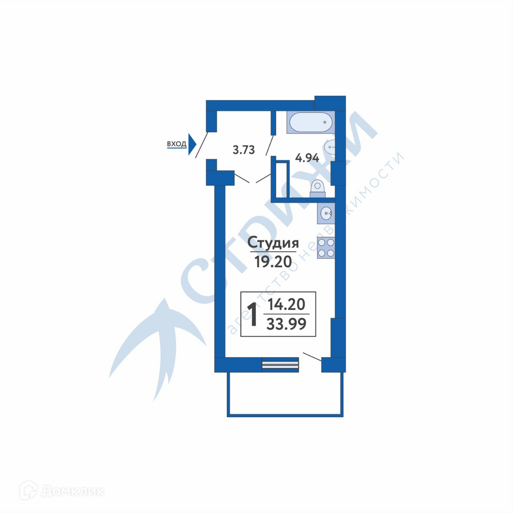 Общая площадь 33 м2