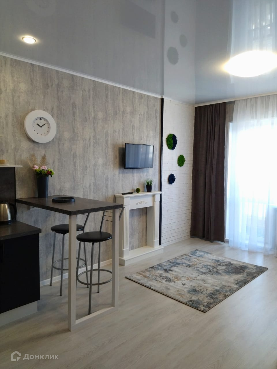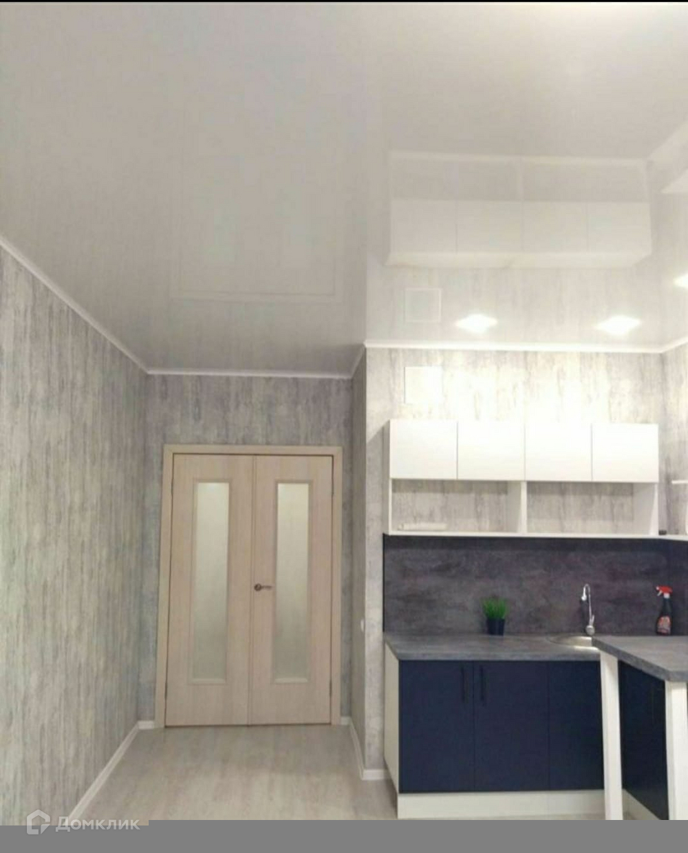 В квартире сделан дизайнерский ремонт, в прихожей на полу керамогранит, в комнате ламинат, в сан. узле и ванной кафельная плитка, натяжные потолки, установлены пластиковые окна, балкон застеклен,установлена железная входная дверь.