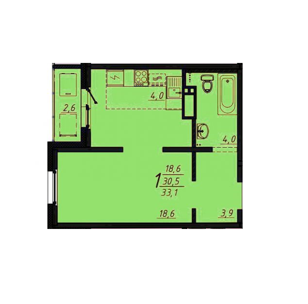 Общая площадь 33 м2