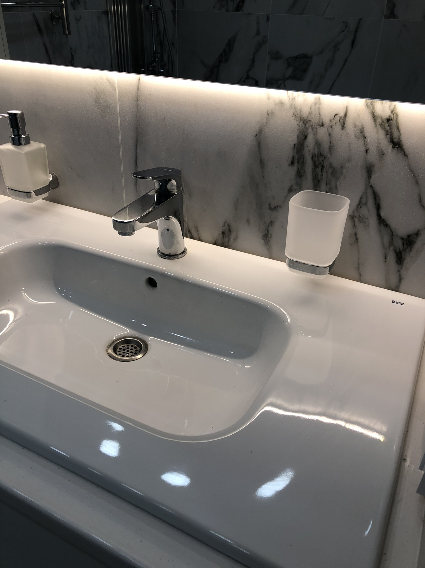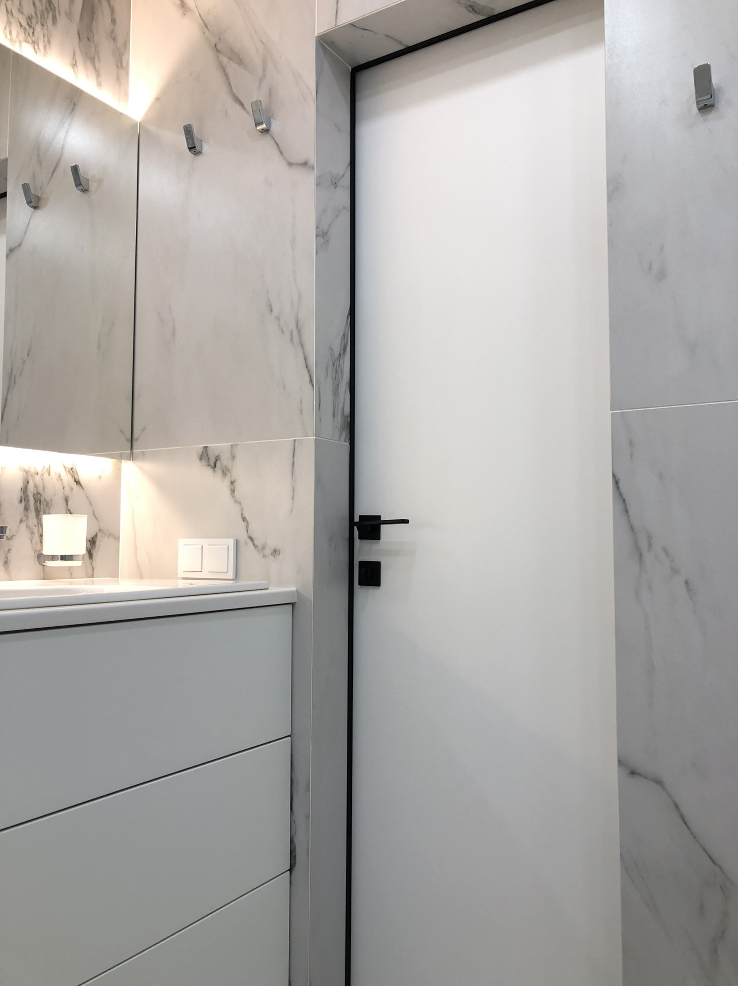 - в ванной окрашенная дверь скрытого монтажа ( invisible)
