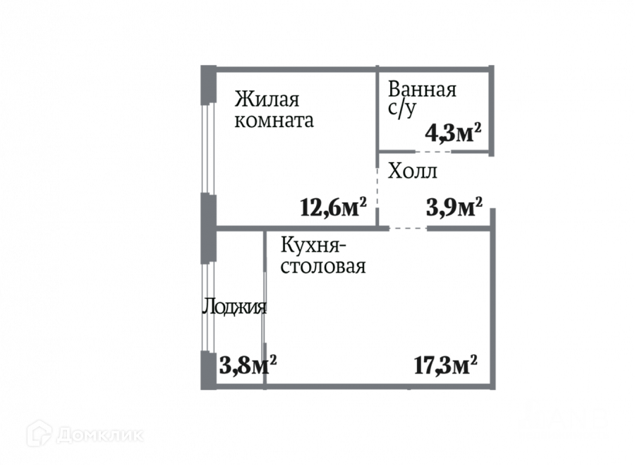 Жилая площадь 12.6 м2
