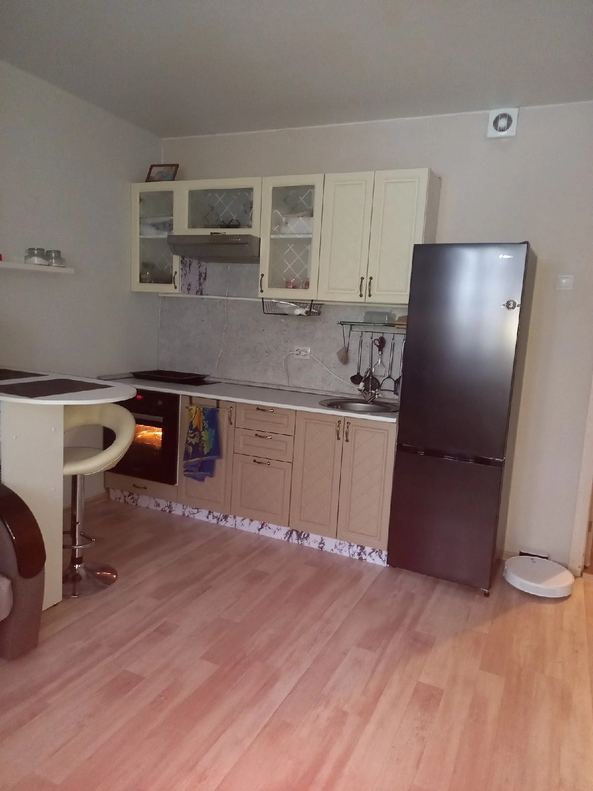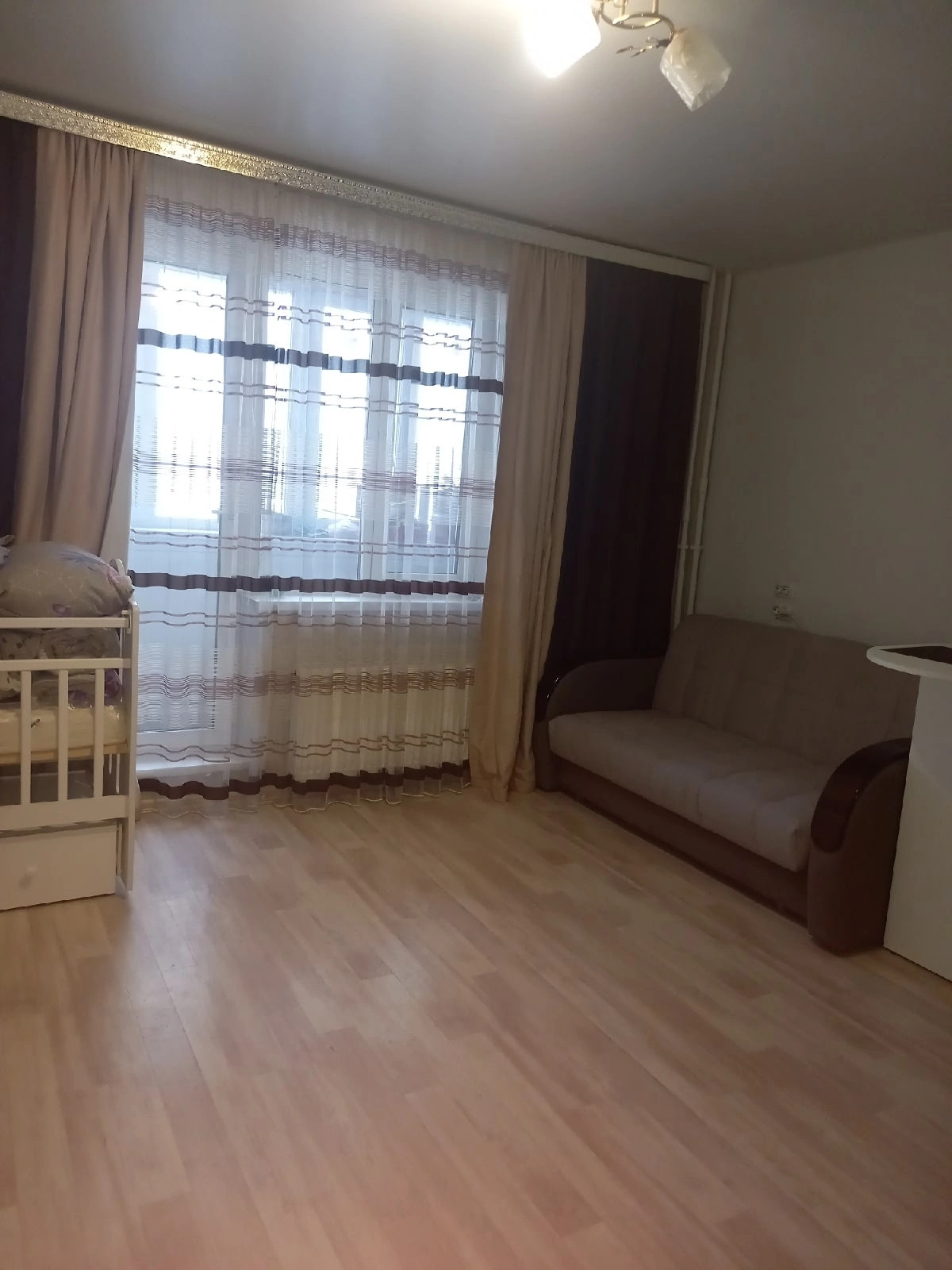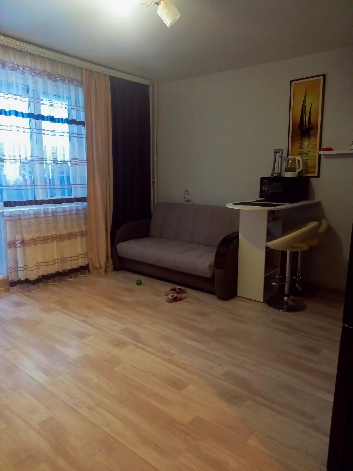 Студия с ремонтом " Заезжай и живи". Лоджия застеклена и утеплена, 2-х камерные стеклопакеты, утеплитель пеноплекс 50мм. Окна - Евро. На полу линолеум, в прихожей ламинат. Санузел в кафеле. Мебель, технику можем оставить по договорённости!