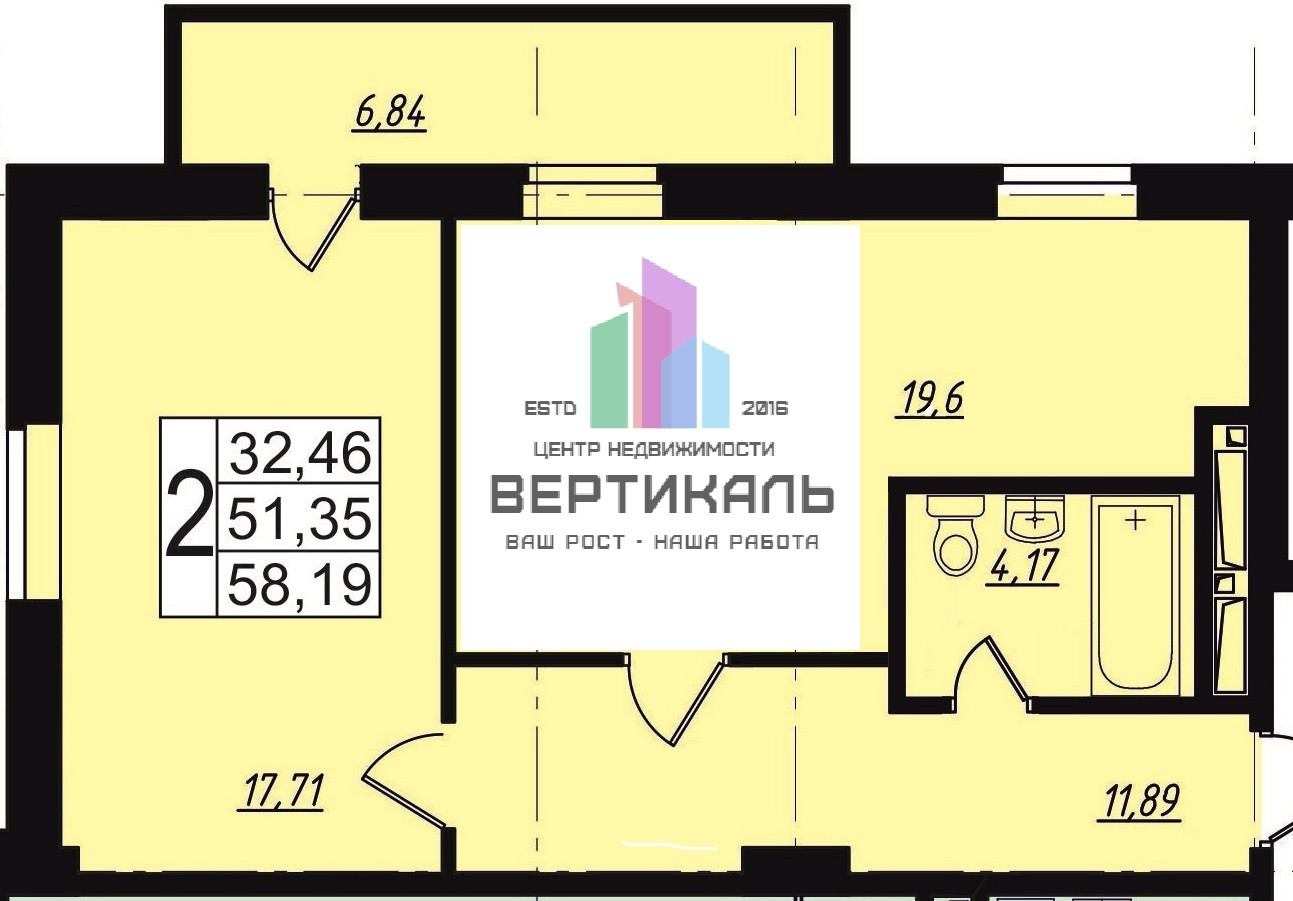Общая площадь 58.19 м2