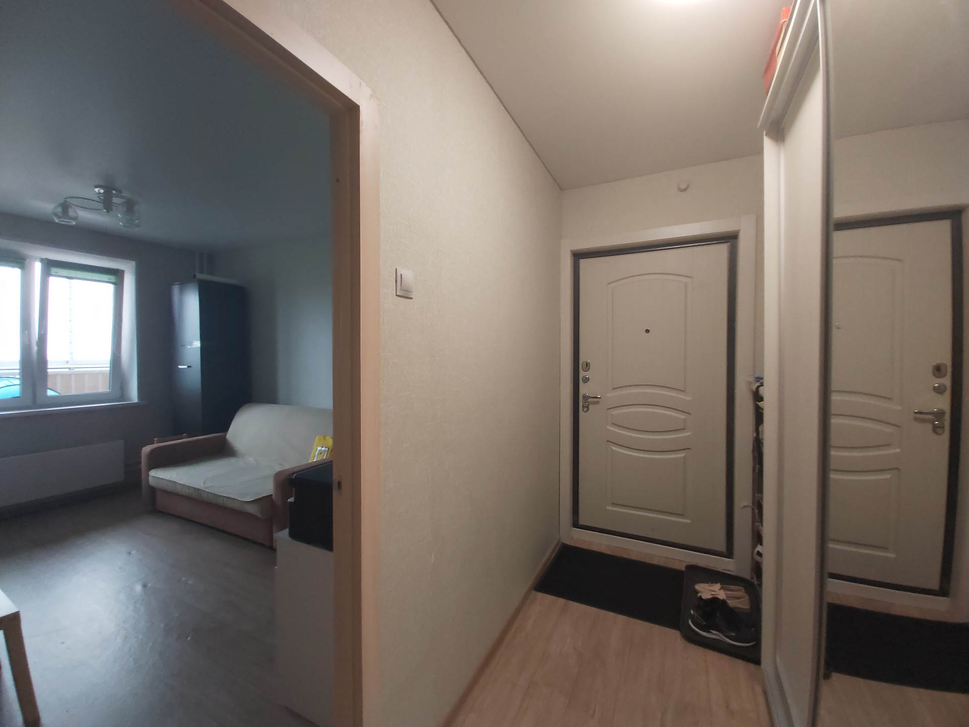 Дом сдан, заселен, строительная отделка, чистый просторный подъезд, большая парковка, рядом с домом остановка общественного транспорта.