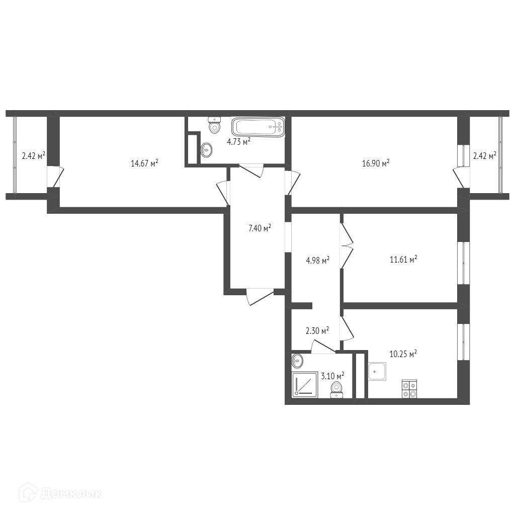 + две застекленные лоджии
