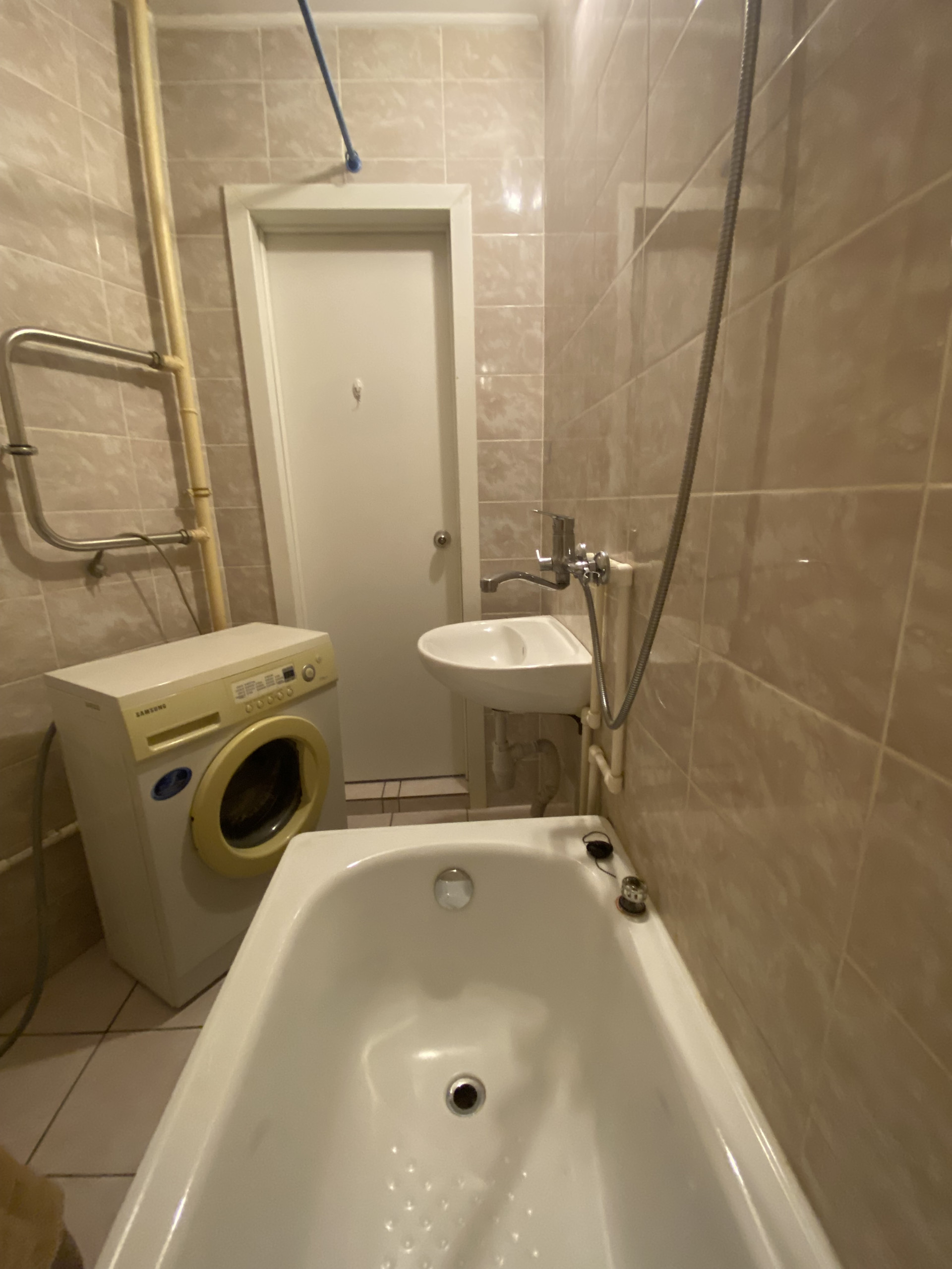 С/у совмещён, сантехника в хорошем состоянии, кафель на стенах и полу.+ стиральная машинка.